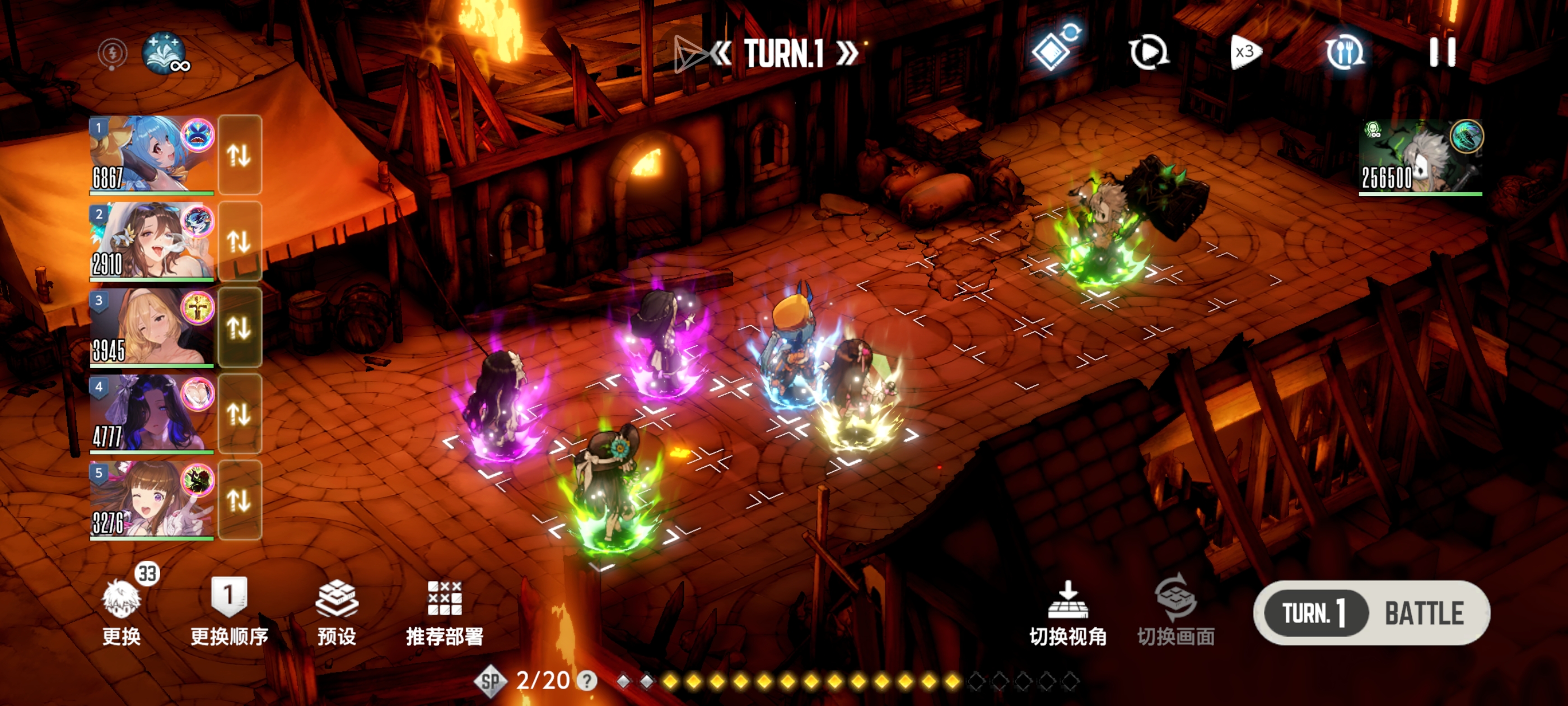 打伤害的角色放最后,上buff的角色往前面放,就是左边的排序位置。