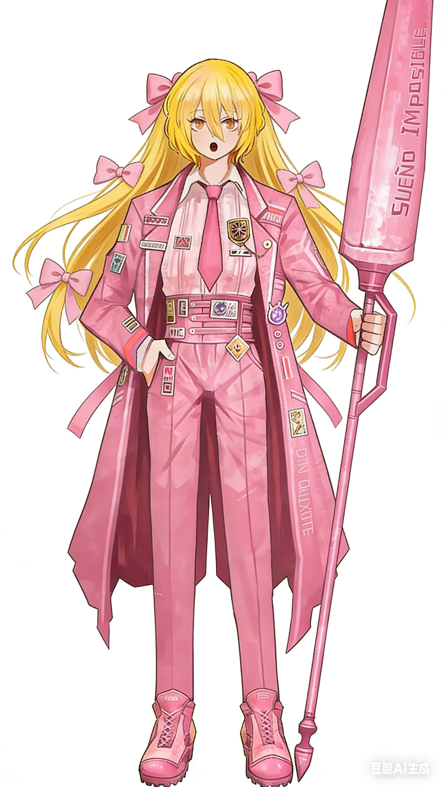 这是我的oc堂吉喵德小美妞,她有两个人格,第一个人格是世界上最强大的色彩级收尾人,第二个人格是世界上最强大的血魔,她们两个的性格截然相反,她最讨厌堂吉诃德因为堂吉诃德抄袭她而且抢走了她的身份,她的武器是粉红血色喵喵枪打一下就要消耗100亿美元