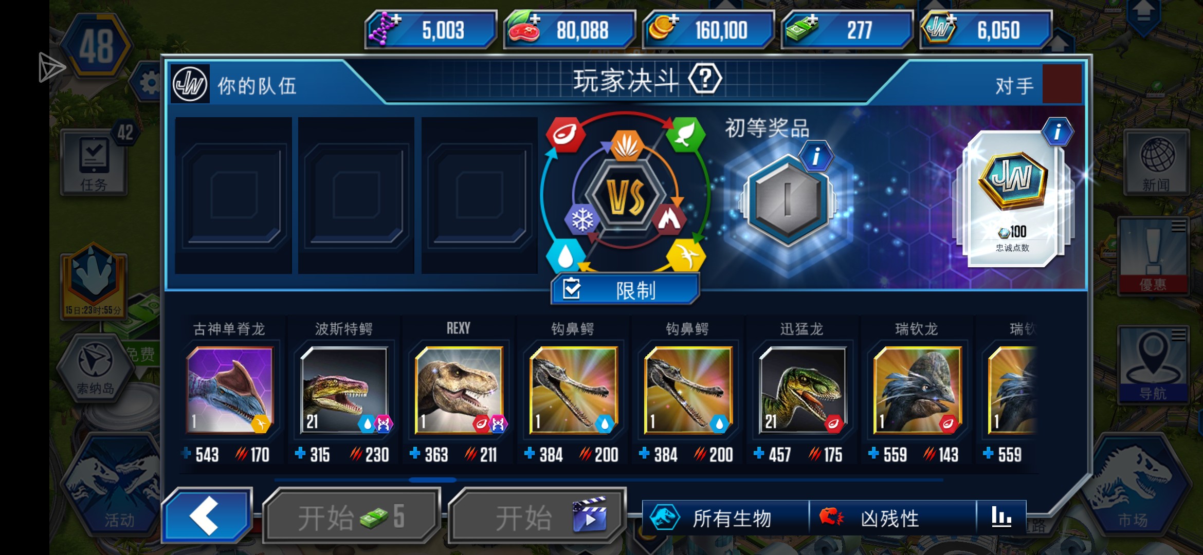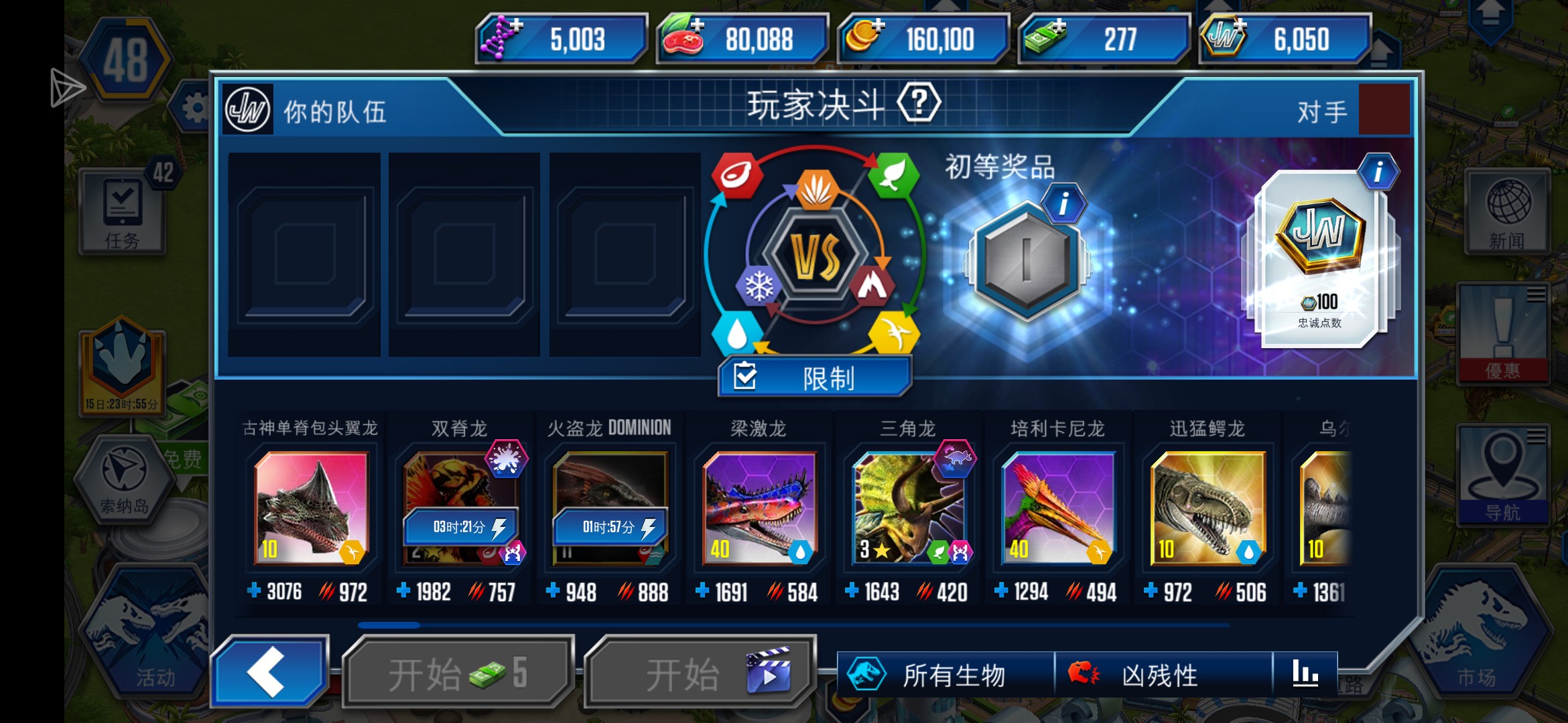 从现在开始攒单脊和帝鳄的SDNA把两栖战力 拉上来。鹈鹕翼龙不用做,没性价比😂😂 你现在战力差距拉的有点开了🤔🤔 你才48级不用做二型暴等后面做一型🤫🤫 攒点DNA攒个几万先在买你想发展的😋😋 可以多拉几只产金币的普通混种,拿金币 慢慢发展,恐龙可以不用升太快(古包就是) 恐龙差距太大可能活动吃不消😭😭