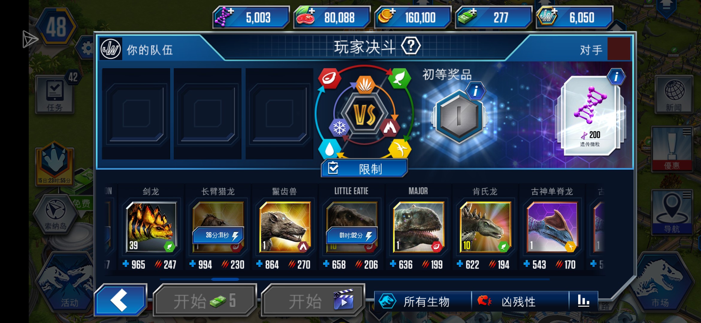感觉现在肉龙狂暴二狂遥遥无期,双脊勉强还行,草龙合了剑角战力跟不上,翼龙dna太缺和食物不够,两栖超级遗传微粒不够(培利卡尼也是),还有琥珀是直接开包还是攒二狂材料(目前只有3只二霸和5w琥珀,没有二迅猛),另外一迅猛差一只满级,一霸21级但食物不够,棘龙只有2只