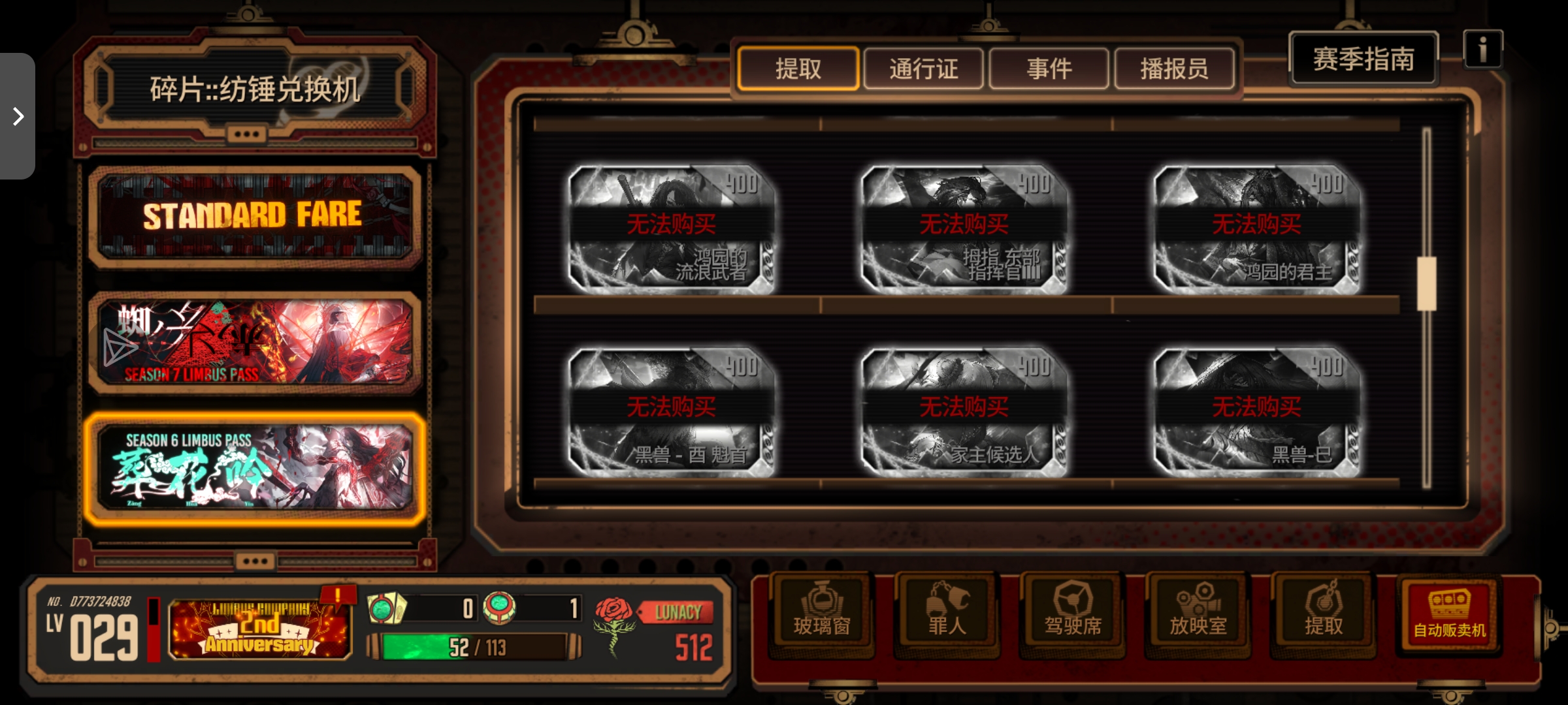 当期赛季不能换取上赛季的人格和ego 如果想要只能硬抽喵