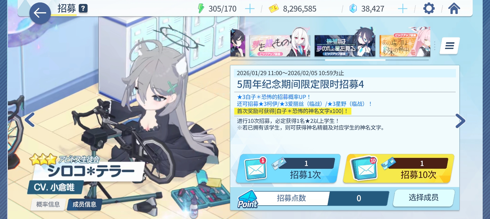 已经有三位了,200抽最后一个kei 没有到很想要我200抽出了11个彩
