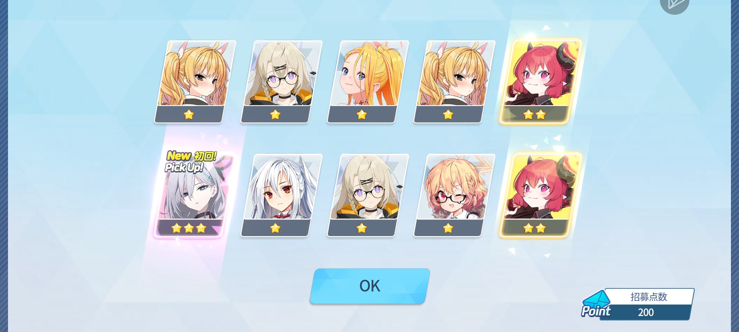 刚好200抽角色齐了,算是相对上个池子来说欧了很多(上个限定池子140抽0三星快干崩溃了)