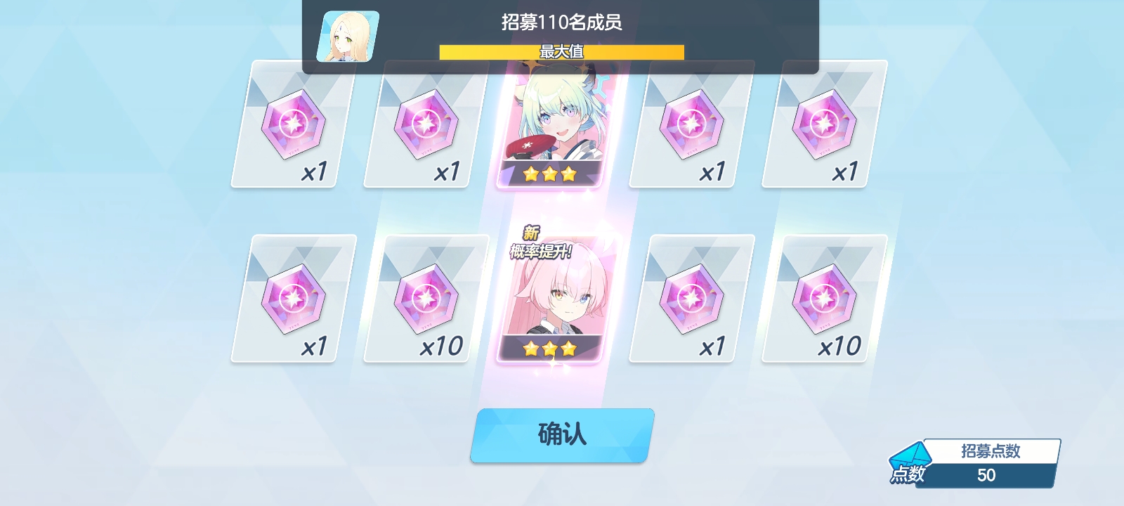 极限靠着9000多石头加几3张张十连券,结束战斗,顺便还送了个星野