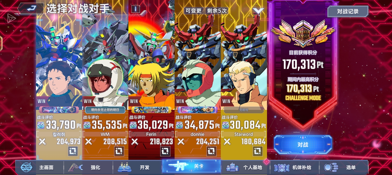 宇宙世纪队只有两个三星的情况下终于打上及格线了
