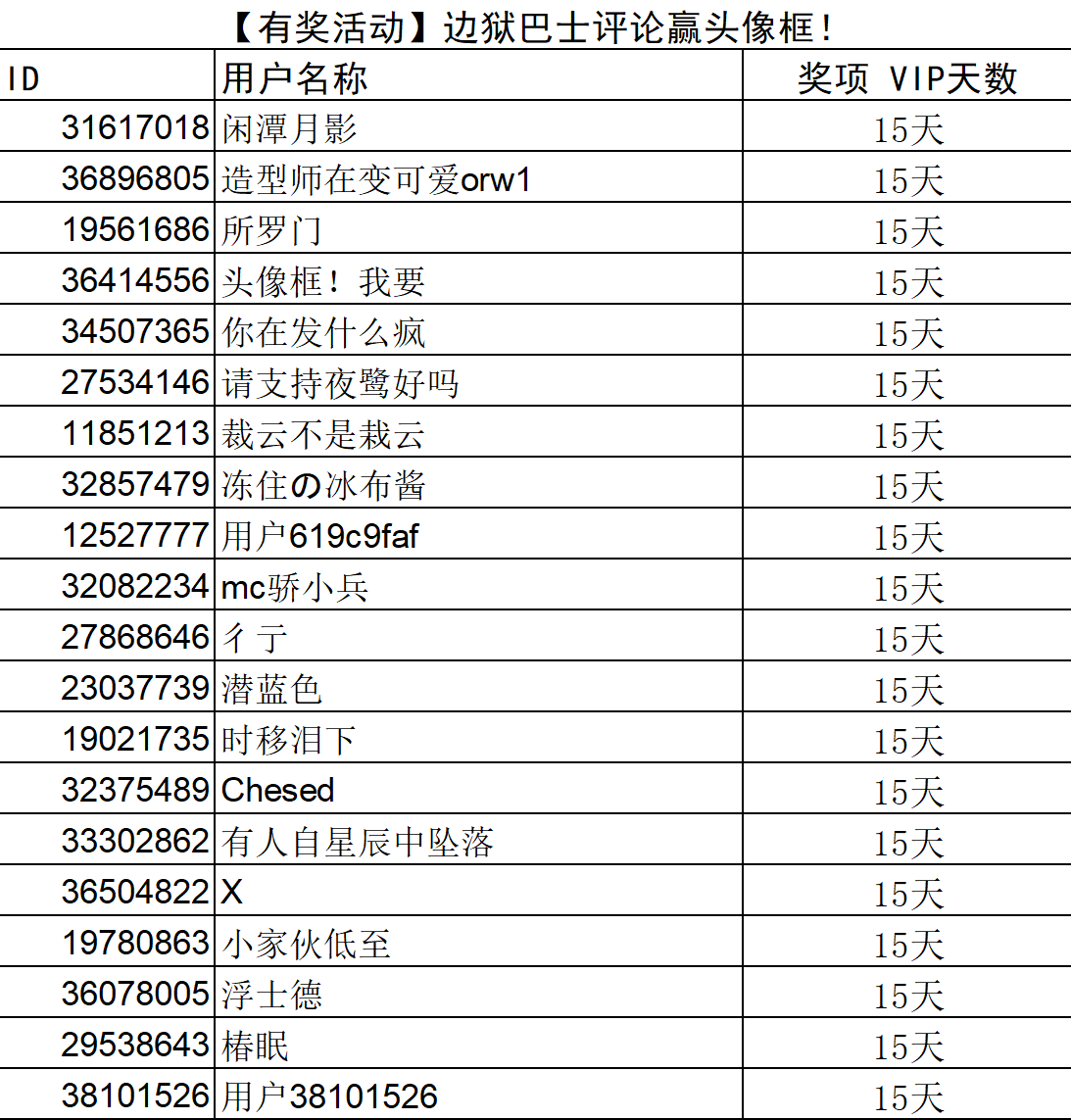 【获奖名单】边狱巴士评论活动