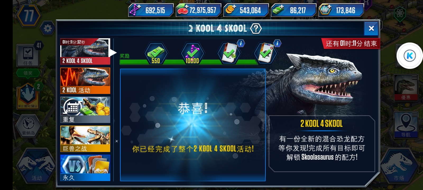 这次我侥幸拿下了斯库拉龙月活动,第一项战斗20场,我因为一直懒不想打,差点没打过,拿草打肉的车轮战,是我玩jw至今最头疼的一次。第一关正常,还没什么压力。第二关开始难受了,中高配侥幸一次过,运气好了一个地方。第三关正式来了,我打了一个多小时,将近十次才过,阵容换了好几次,有的时候带群生,有的时候不带英雄,每次打之前点心疼的几百绿钞,导致我资源也没攒下来。我就硬生生从七点多打到马上九点,每次都是因为对面太强,我太弱以及运气不好,水平不够,打到只剩三四个龙,每次都是这么难受绝望,快打吐了,甚至有一次打到了最后一个,结果差一个点没打过。我本来要放弃了,最后觉得都花了这么多了,而且不拿下这个龙又会增加遗憾,于是马上九点的时候,我终于拿下了。而这一切,都源于我之前一直懒得打这简单的20场。所以大家千万别学我😭现在不好说当时的感受了,言不及义,只有图片还留着。