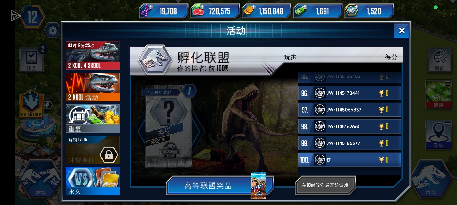 看你战力发展的如何吧,感觉我在做阅读理解……现在活动大多数是按公园等级而定难度的,大概就出了恐龙保存和解锁活动,简单点发现打不过了就可以考虑去升,不用太担心断层,当然你如果没多少群体就别拉一般活动难度太多,不然恐龙保存难打,毕竟那奖励还是很好的。