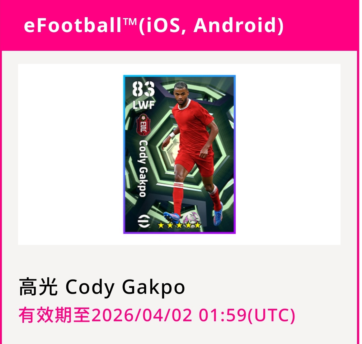 eFootball 高光球员卡:科迪·加克波
