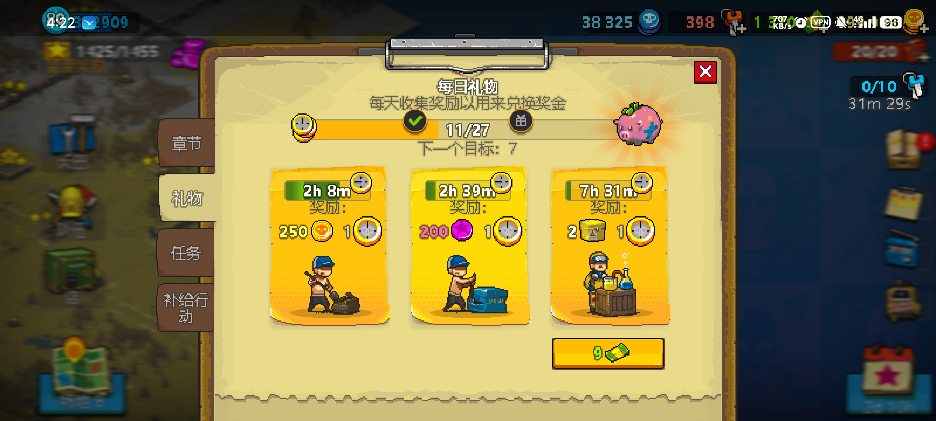 看广告的目的不是金币,广告能给多少金币,奥斯汀抢劫是人手必备的,看广告的目的是刷蓝币,以及推物资收集来获得金骷髅和绿钞