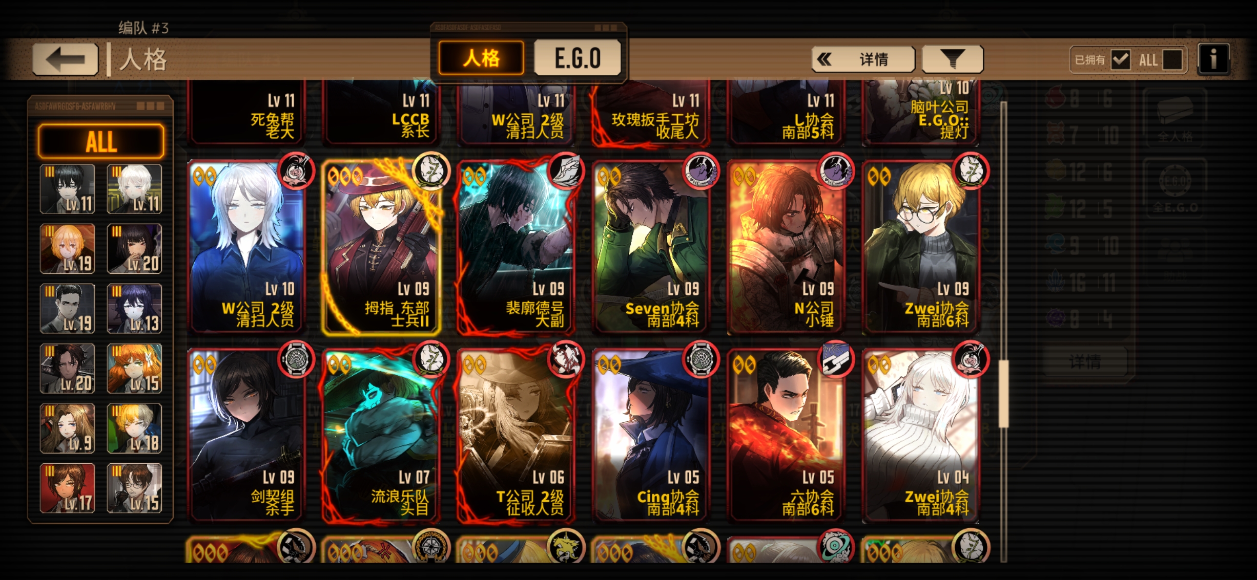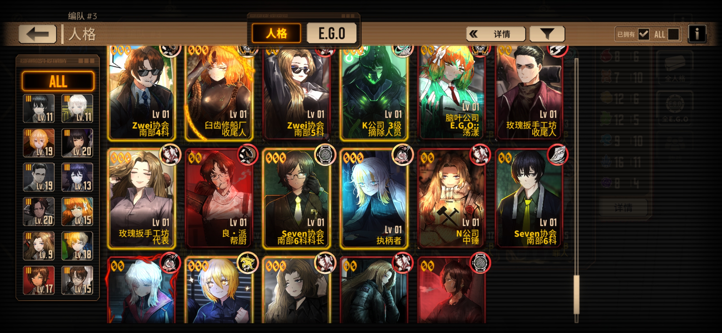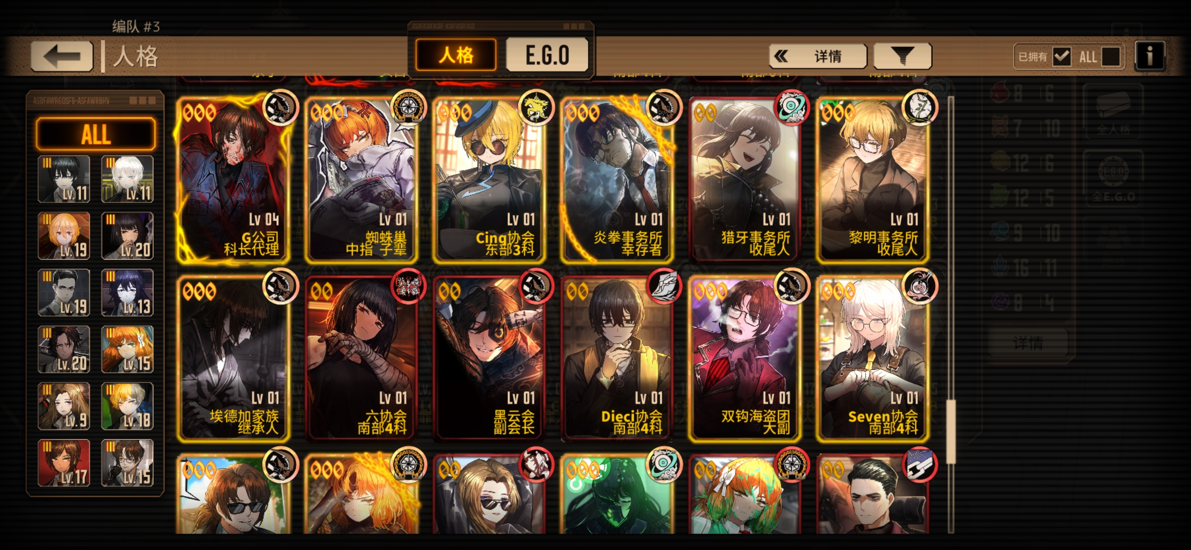 只能算小升初,三灯挺多的,可以把有必要的三灯都升一下。 在编队里把每个体系都编一队,往里面填人格,6个左右算你完成一队,至少能组出个三队左右,然后把这些人格都升满,如果有多体系队就再组几个编队,用来打牢。 然后再弄三个斩突打编队,让每个经验本都有抗性对口的队伍,方便打经验本。 如果有闲情雅致,也可以弄一个牢n门队,看着玩也不错。 然后呢再弄一个队伍,作为养成的编队,要靠前,每天刷完经验本和灯泡本后点开这个界面,把你没养的人格放在上面,每天养养,养完之后呢换他的没养的人格,然后呢再给他们都装上ego,让这些ego都到三破,w 级四破,如果有同等级的Ego,就把你现在养这个ego到三破之后换成那个同等级没养的,w 级养完之后,就卸下来,之后每次打开这个编队的时候都能看见没养的人格,点开右上角详情的E go界面的时候,都可以看见自己的ego养成情况,慢慢养,等哪天把能用且好用的人格养满级,然后把自己的所有ego全部至少三破,就能算上一名中登了。 箱子不用急,不用急着组体系队,先慢慢养,不急着换。