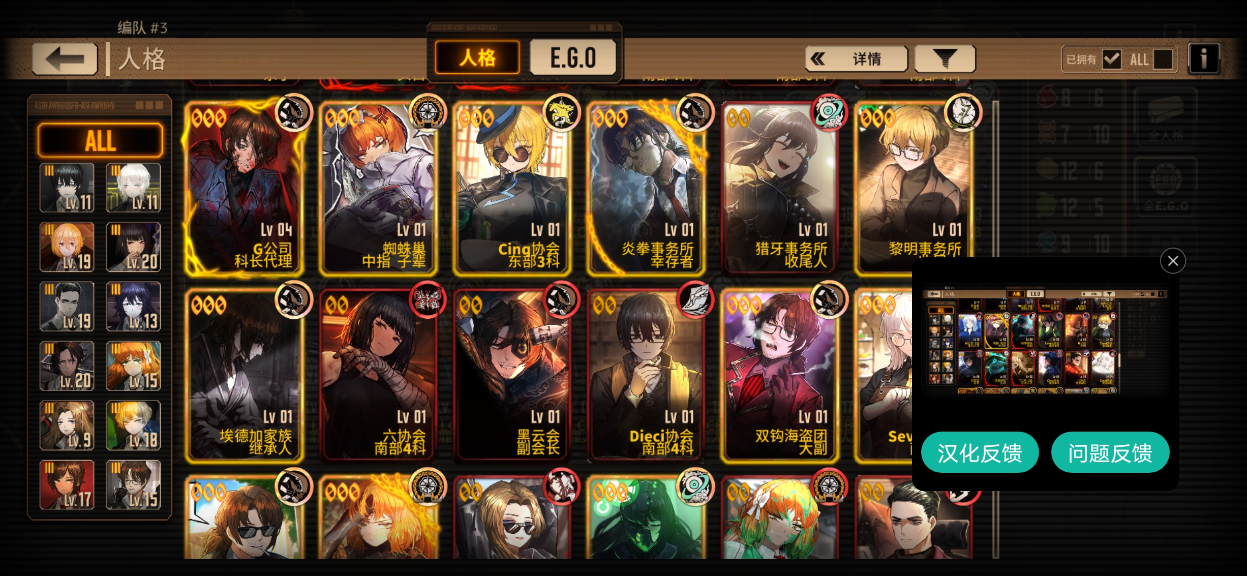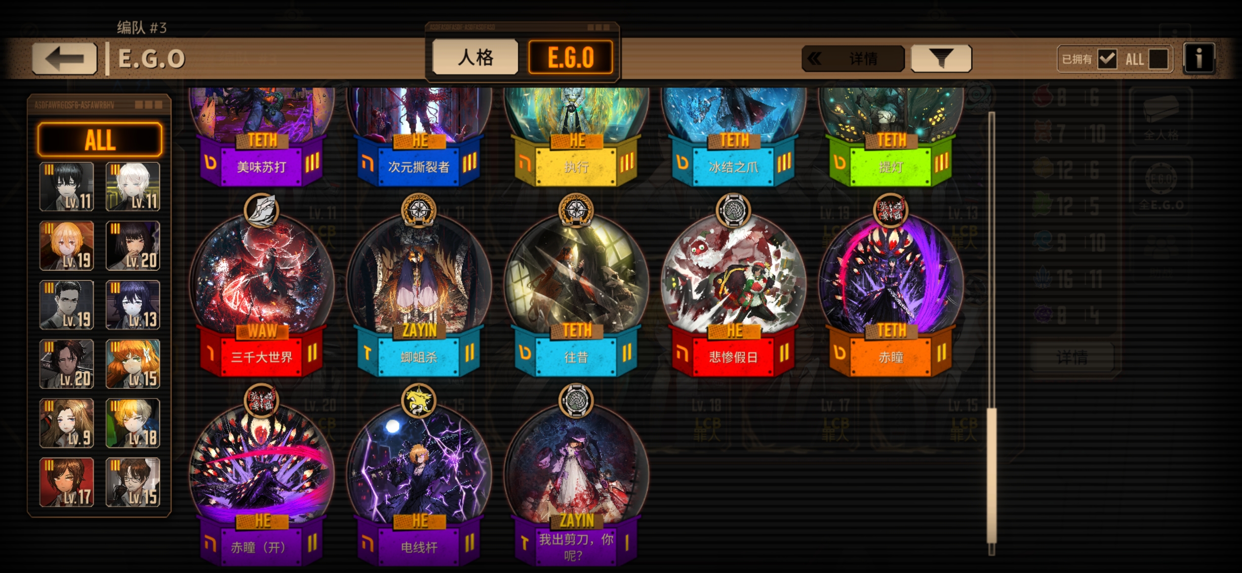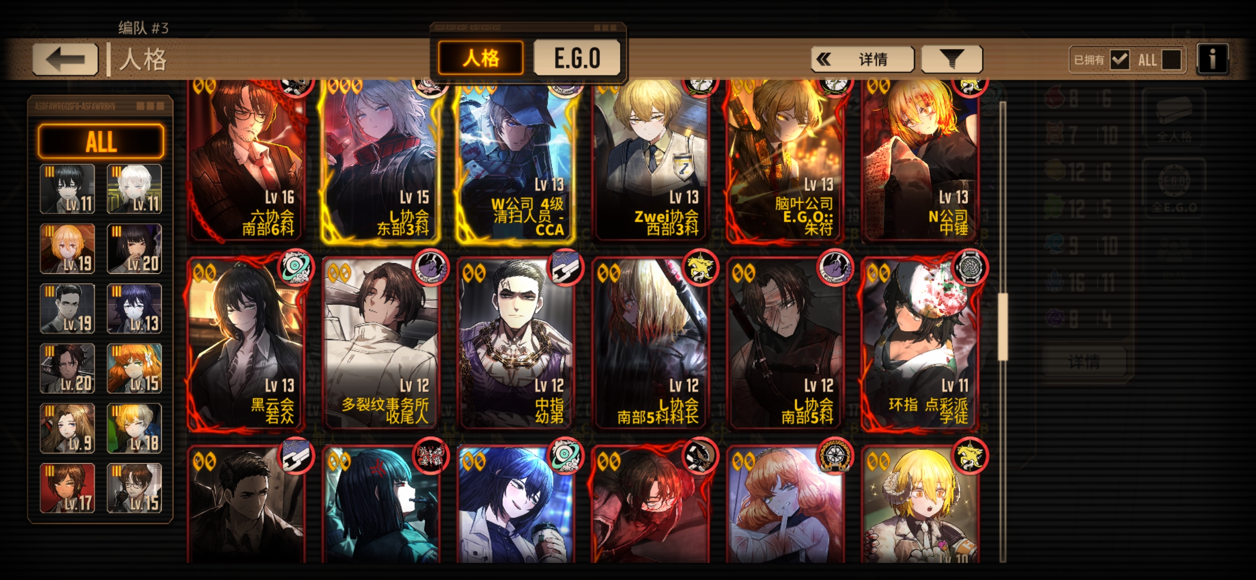 只能算小升初,三灯挺多的,可以把有必要的三灯都升一下。 在编队里把每个体系都编一队,往里面填人格,6个左右算你完成一队,至少能组出个三队左右,然后把这些人格都升满,如果有多体系队就再组几个编队,用来打牢。 然后再弄三个斩突打编队,让每个经验本都有抗性对口的队伍,方便打经验本。 如果有闲情雅致,也可以弄一个牢n门队,看着玩也不错。 然后呢再弄一个队伍,作为养成的编队,要靠前,每天刷完经验本和灯泡本后点开这个界面,把你没养的人格放在上面,每天养养,养完之后呢换他的没养的人格,然后呢再给他们都装上ego,让这些ego都到三破,w 级四破,如果有同等级的Ego,就把你现在养这个ego到三破之后换成那个同等级没养的,w 级养完之后,就卸下来,之后每次打开这个编队的时候都能看见没养的人格,点开右上角详情的E go界面的时候,都可以看见自己的ego养成情况,慢慢养,等哪天把能用且好用的人格养满级,然后把自己的所有ego全部至少三破,就能算上一名中登了。 箱子不用急,不用急着组体系队,先慢慢养,不急着换。