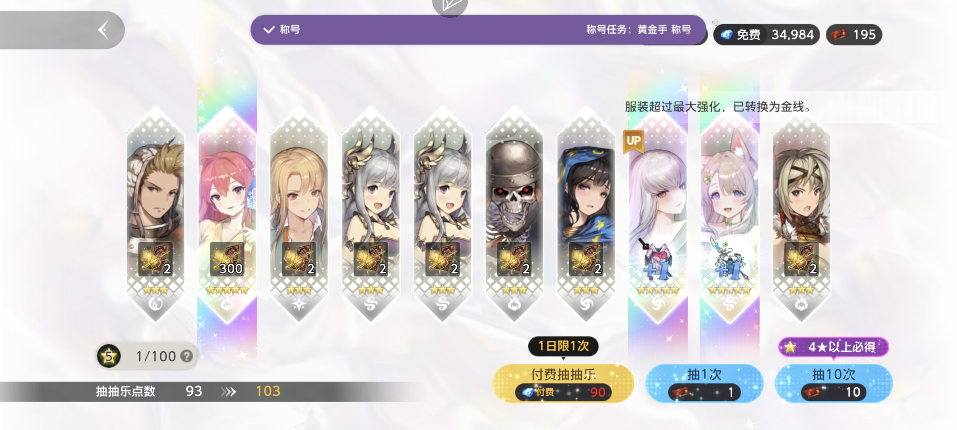 刚玩的话可以不抽或者开图鉴,重点是铁打的辅助,流水的c,你辅助都满破的话,c位只需要抽到减sp就能玩的很舒服,抽数不多可以跳过,这期优先抽温泉管理员黎维塔和小萝莉巫女皮