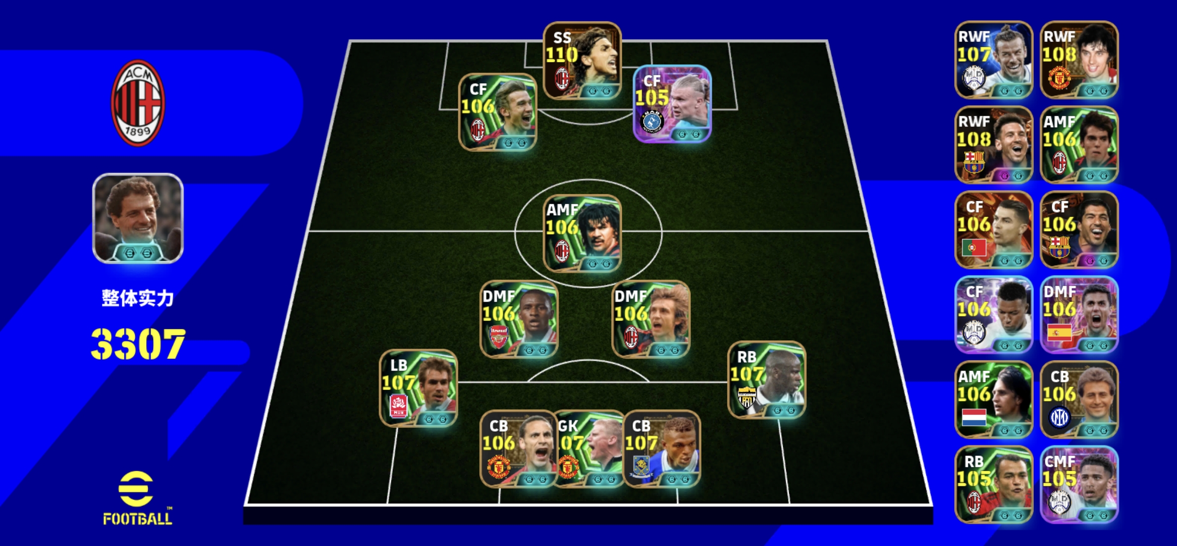 前场古利特和巴佩双中锋,影锋放贝斯特,前腰克圣或卡卡看你喜好,后腰皮尔洛换罗德里或者放中前卫贝林