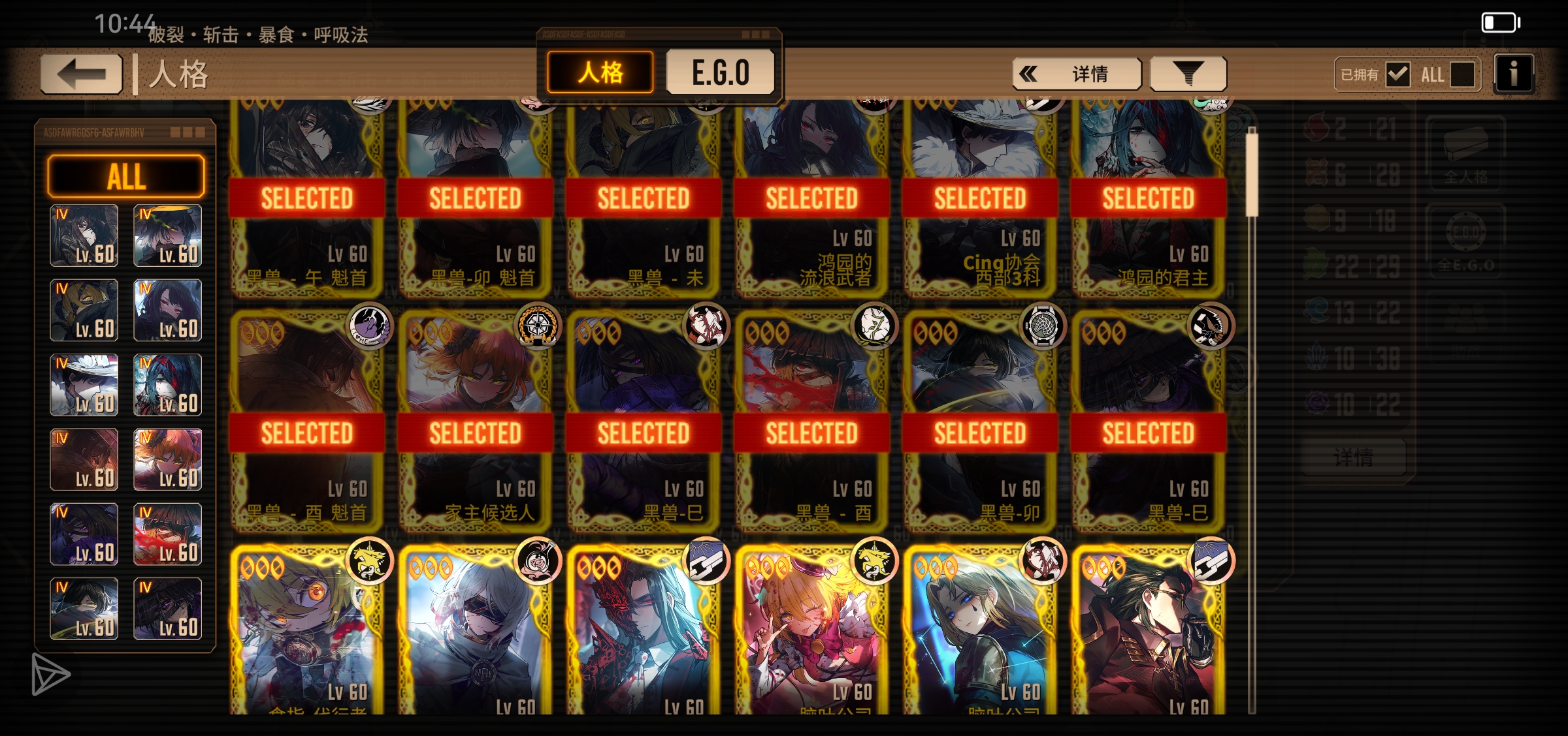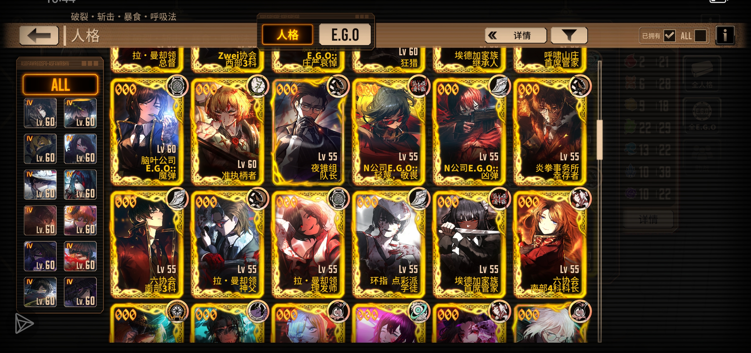没怎么升EGO 换了几个新人格升级卷用了