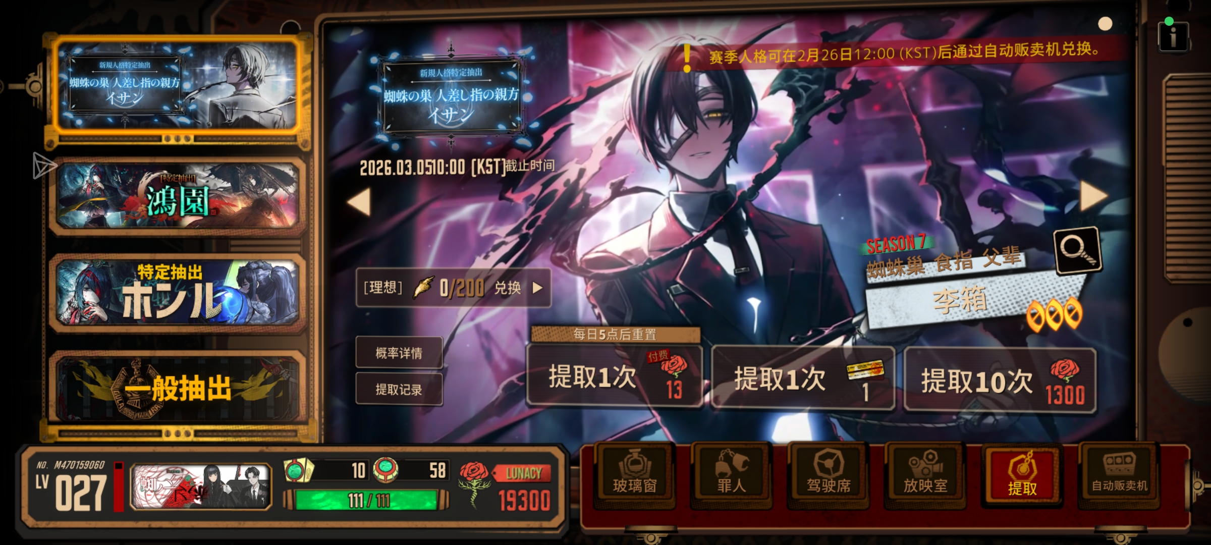 伪,当期的限定但下一次就可以换了,不过连瓦夜都不抽狂气攒着就没什么意义了