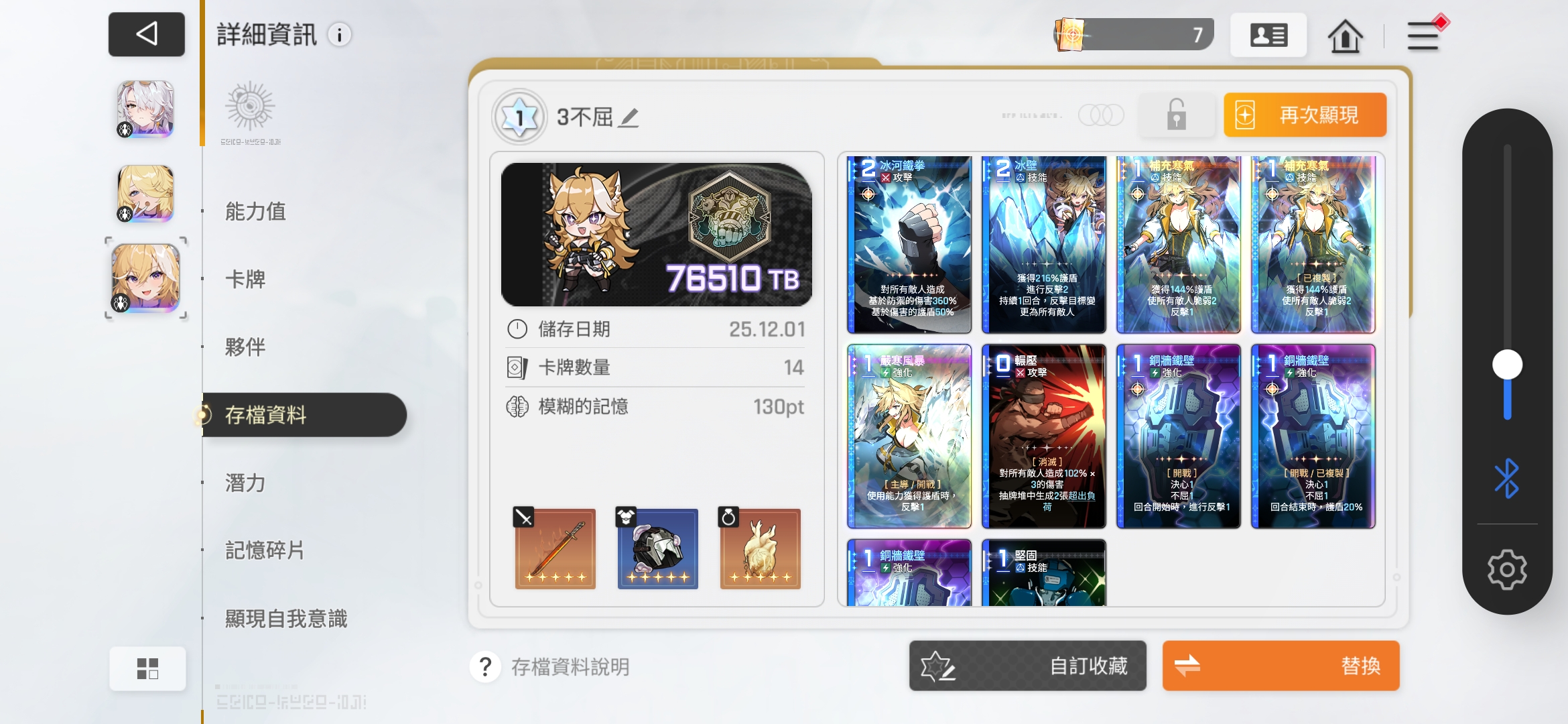 因为爬塔目前是测试,最多开放到75层160级难度。所以我这个配队上限还有空间。平民都能用的铁三角组合,都只要0费就能用。上图: