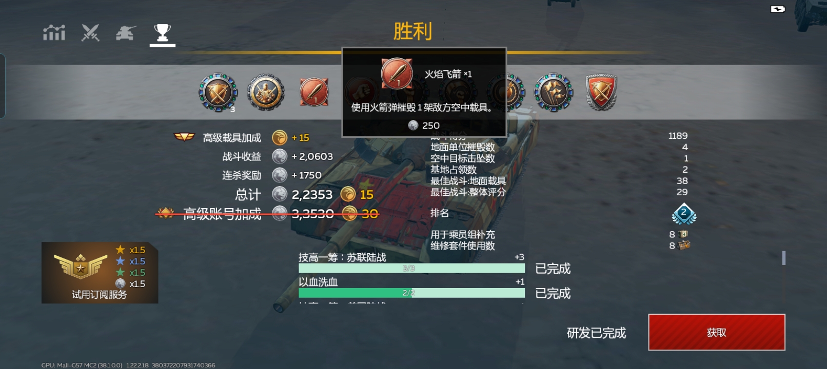 这是我在陆顶空战用后期型的火箭弹第一次打下空中单位,也是在无意间拿到了这个成就(我都没想到还有这个成就),在此留作纪念