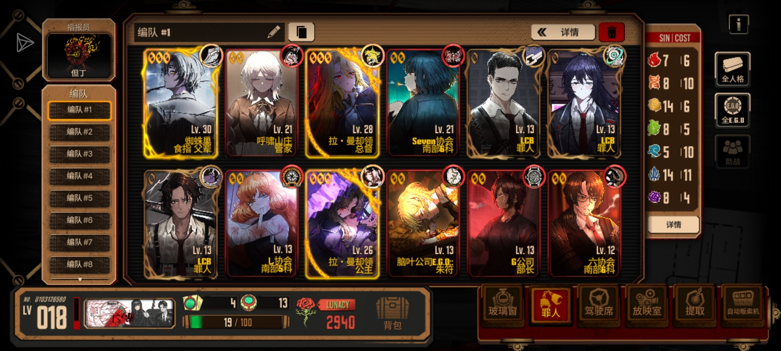 把没有三破的人格全部下了 吃不到被动加成 有了李箱这个强势人格,N辛的作用不是特别大 建议换G虫 记得一定要升到三破才有被动加成 你这上一堆没突破的不如上初始人格