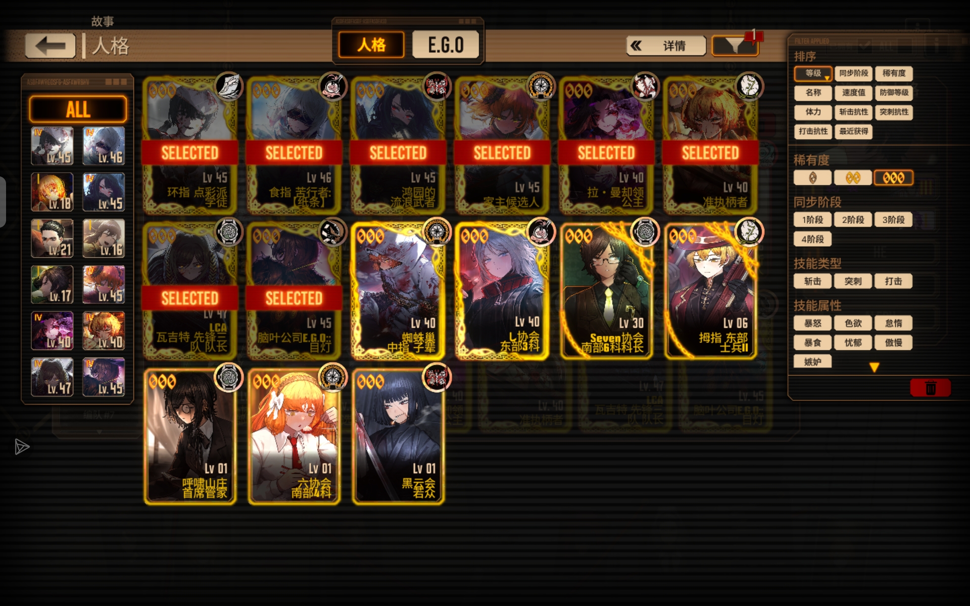 一赛季可以拿个g虫挂后台,你这些人格大概率是往呼吸走,最后的自选可以拿一个君主宝或者蛇罗(感觉还是君主好点),这两个不仅有呼吸,还可以转破裂或者呼破,后面要走破裂可以把奥提斯的兔子换一下,你这些人格前期想抽就可以走呼吸(食指浮+黛玉良+惜春玛+有三个)破裂(黛玉良+惜春玛+公主罗+七奥有四个)流血(环箱+公主罗+n辛+中指玛有四个,黑云良是不是忘了)沉沦(食指浮+lca奥+目灯虫有三个)
