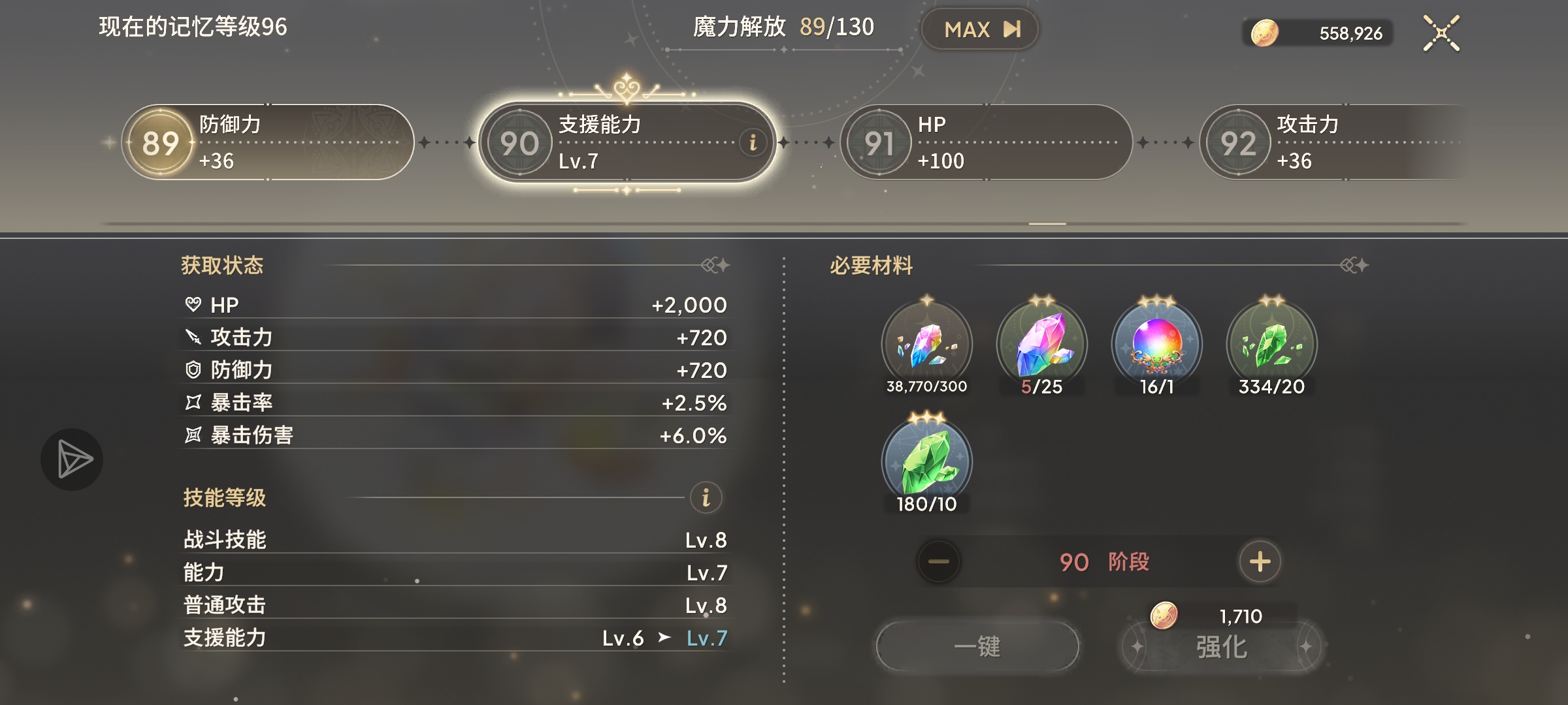 到强化任务里跳过几下就有一堆啊😨 还是说你没解锁有这个的任务就强化到89了(很逆天的。。
