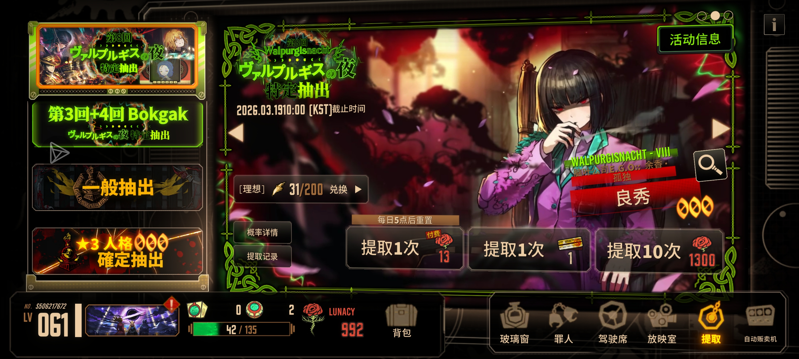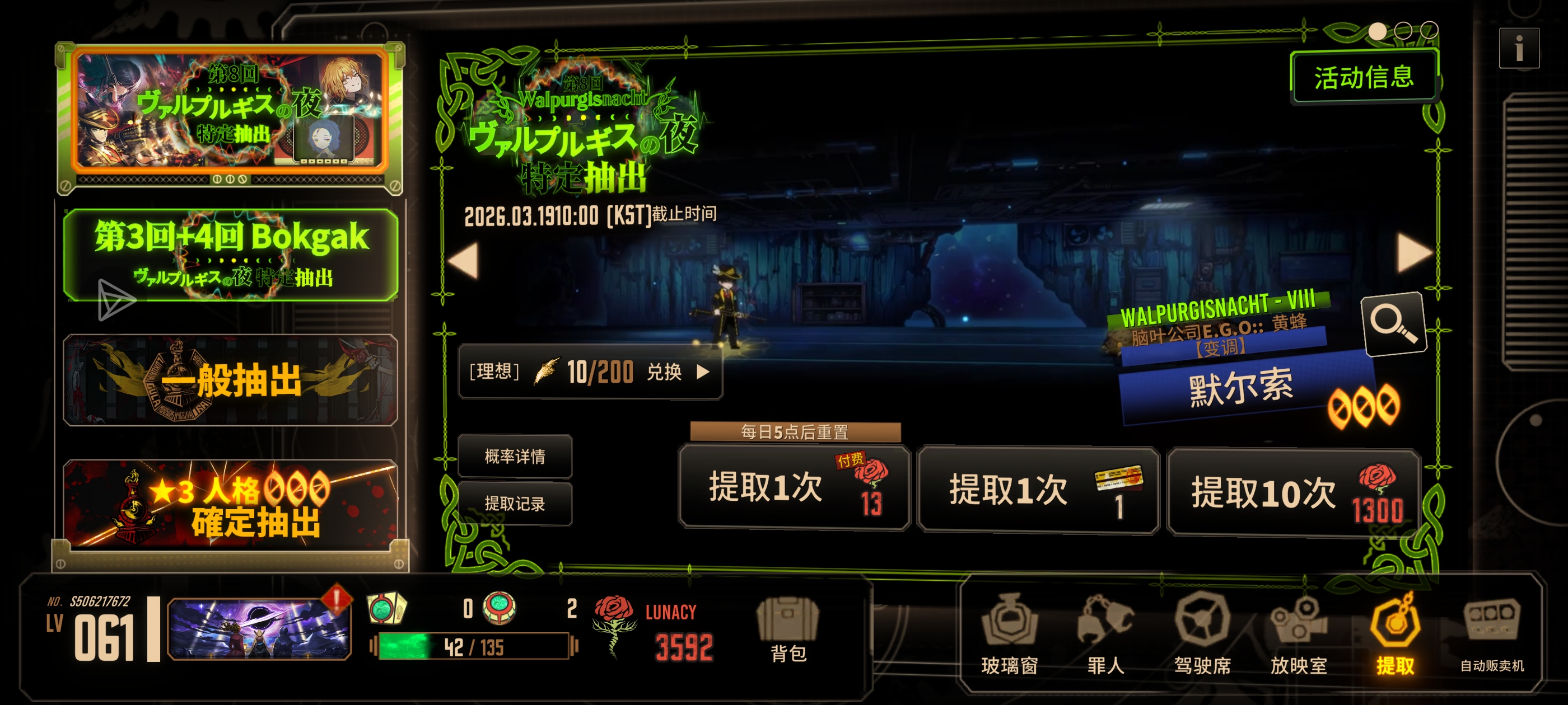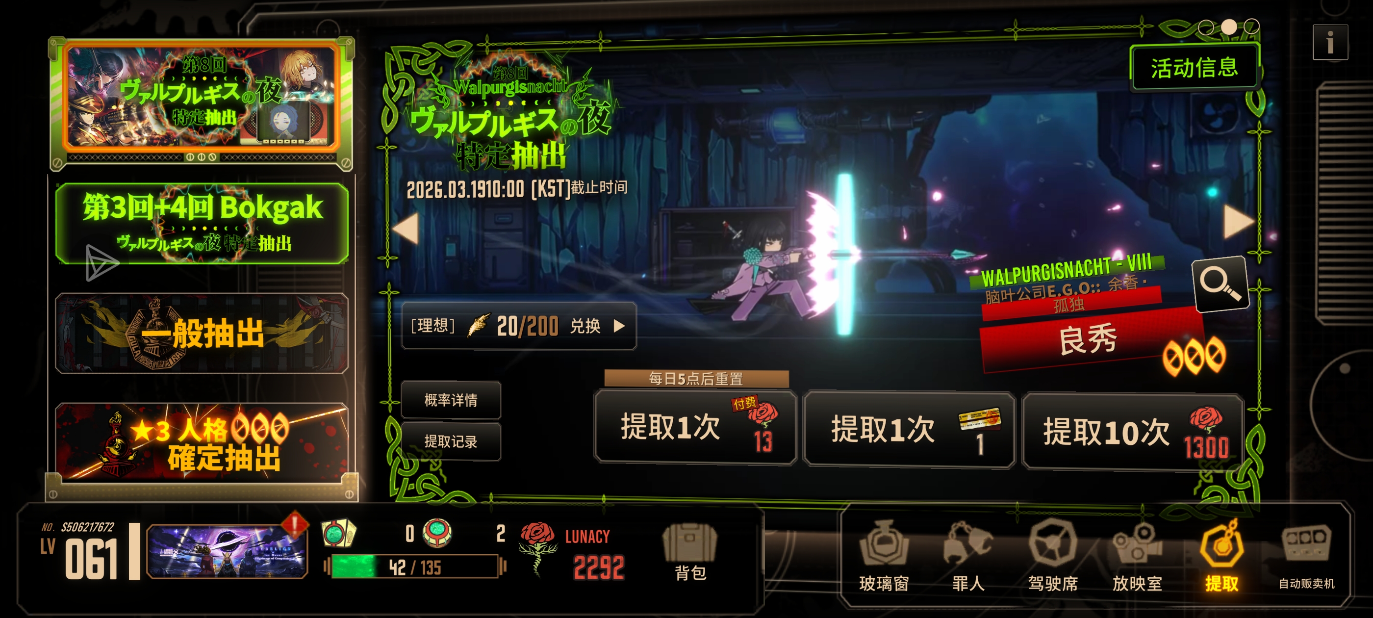 不知道瓦夜要来了,忘攒狂气了只剩着50抽
