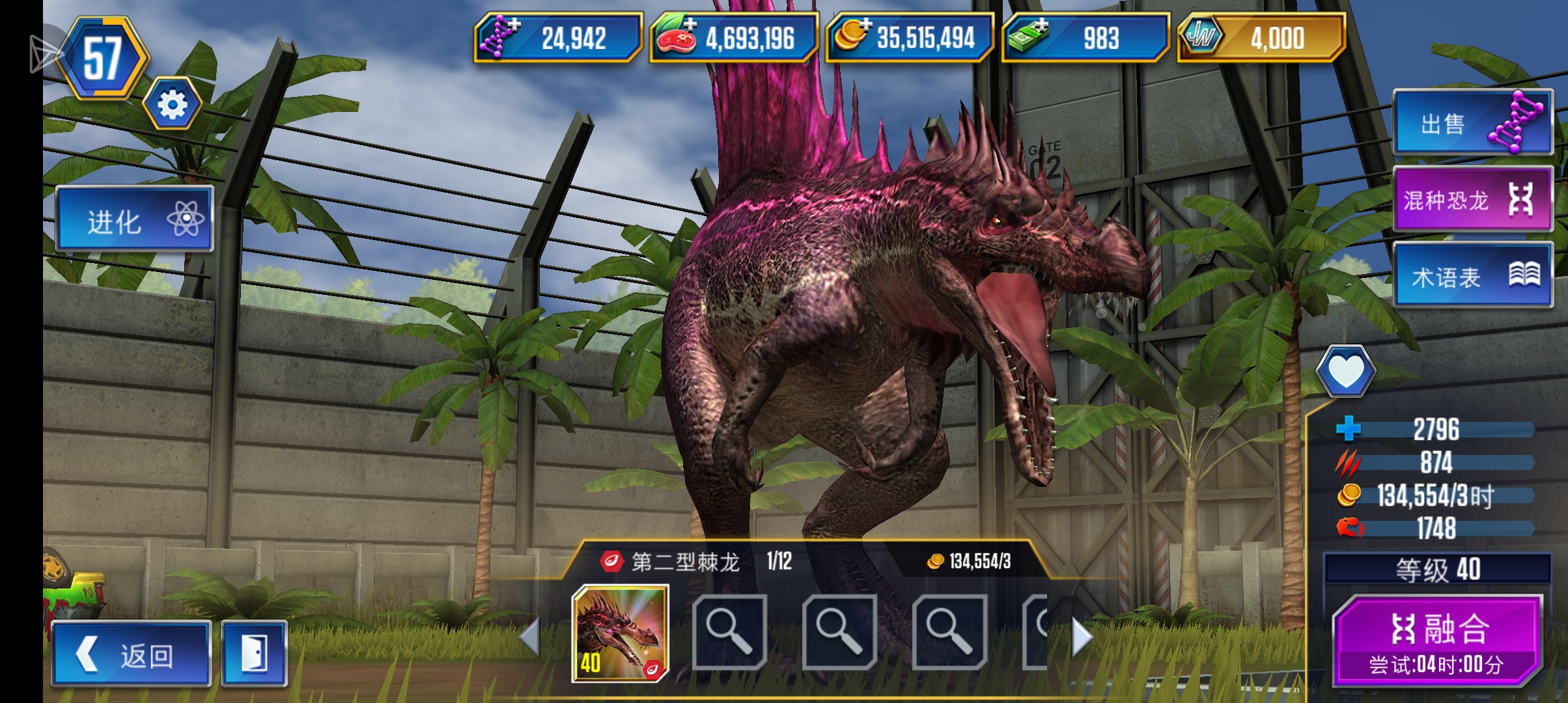 二型棘龙和猪鳄之前出过锦标赛好像,二型棘龙还可以从琥珀包里开出来,之前情人节的几次活动给的卡包运气好也可以开出二型棘龙。
