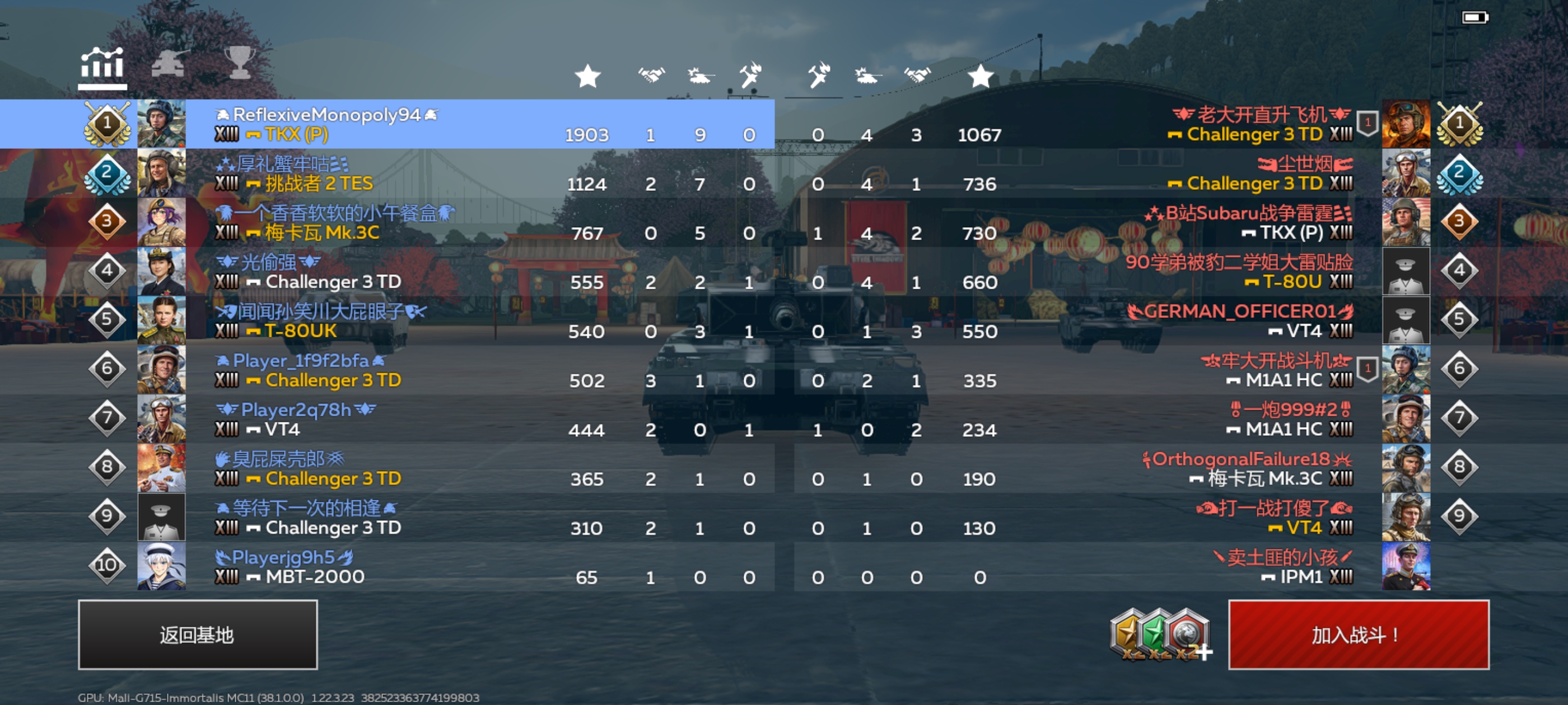 战争雷霆手游的。服务器。