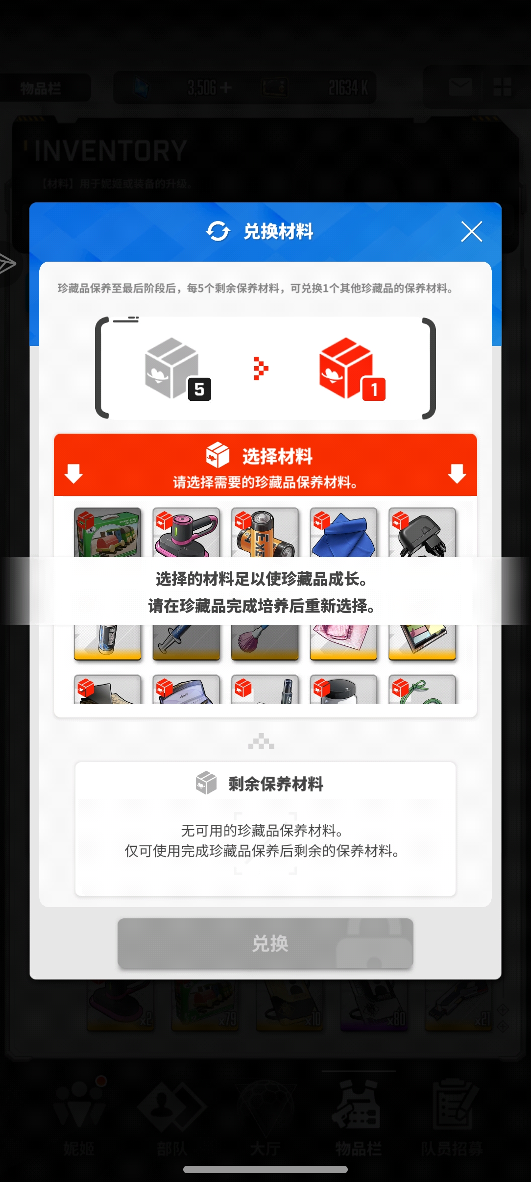 这就字面意思 你想用来换的材料本身要能够给它自己的珍藏品做出来多余的部分才能用来五换一的[anzhongguancha]