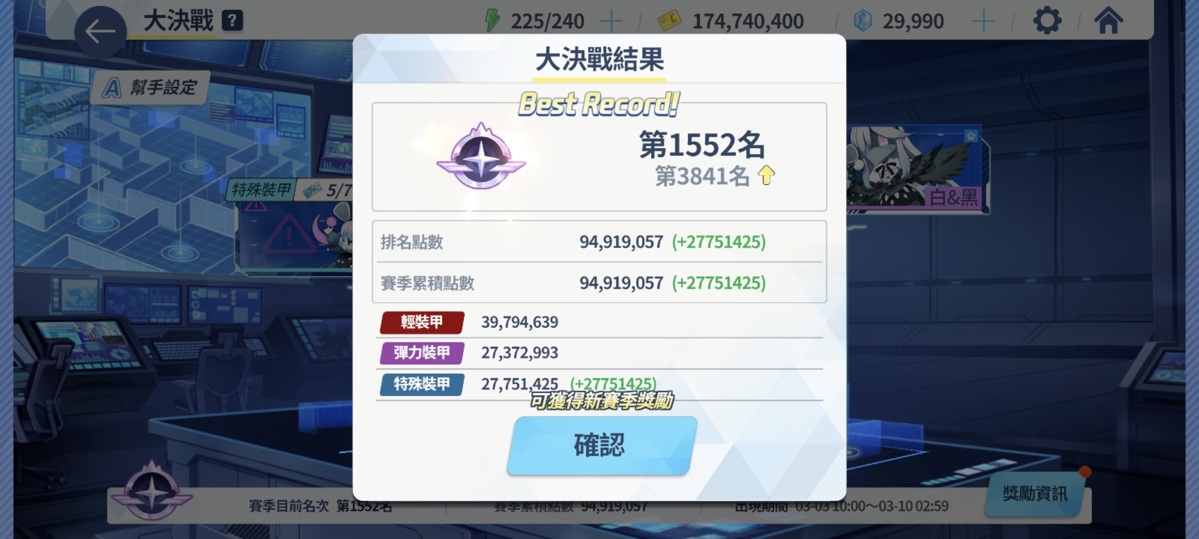 蓝甲完全没有凹度,属于是配置到了自然过的那种,红甲TM还剩200万血不想凹了所以用第二队直接收尾,振动ⅰns女仆桃疯狂射击再接两辆小火车,也是躺平过了