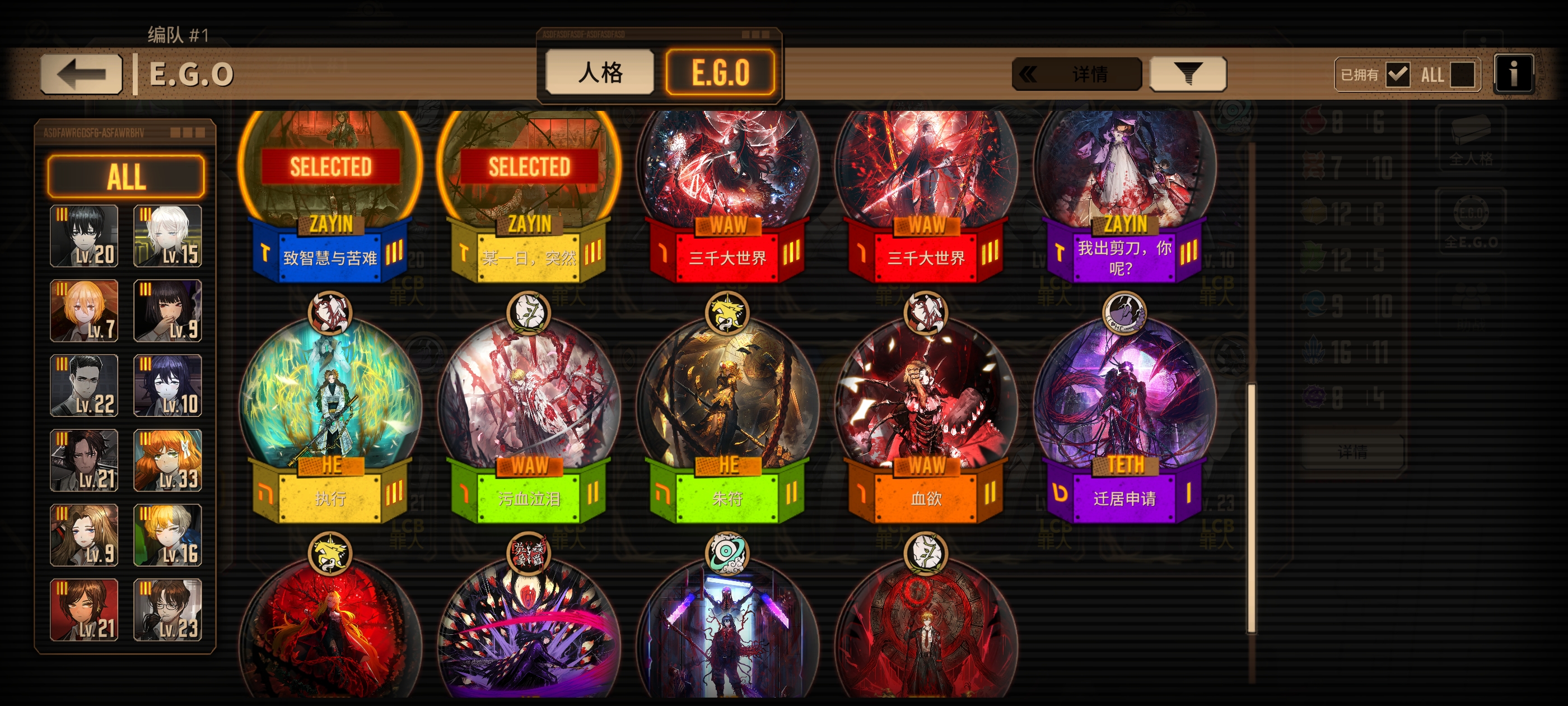 看你想往哪个方向发展咯 燃烧魔弹加Ego 破裂就把两个兔子换了 剩下的沉沦和呼吸我看你也差不多了没必要换 震颤的成本太高了目前不考虑