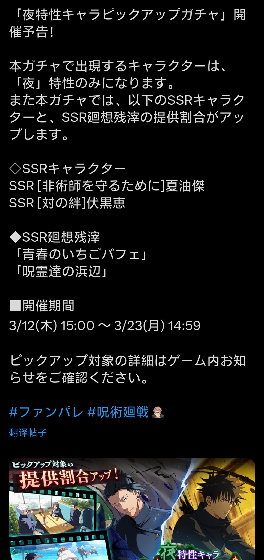 3月12号复刻夜 SSR 夏油杰 伏黑惠
