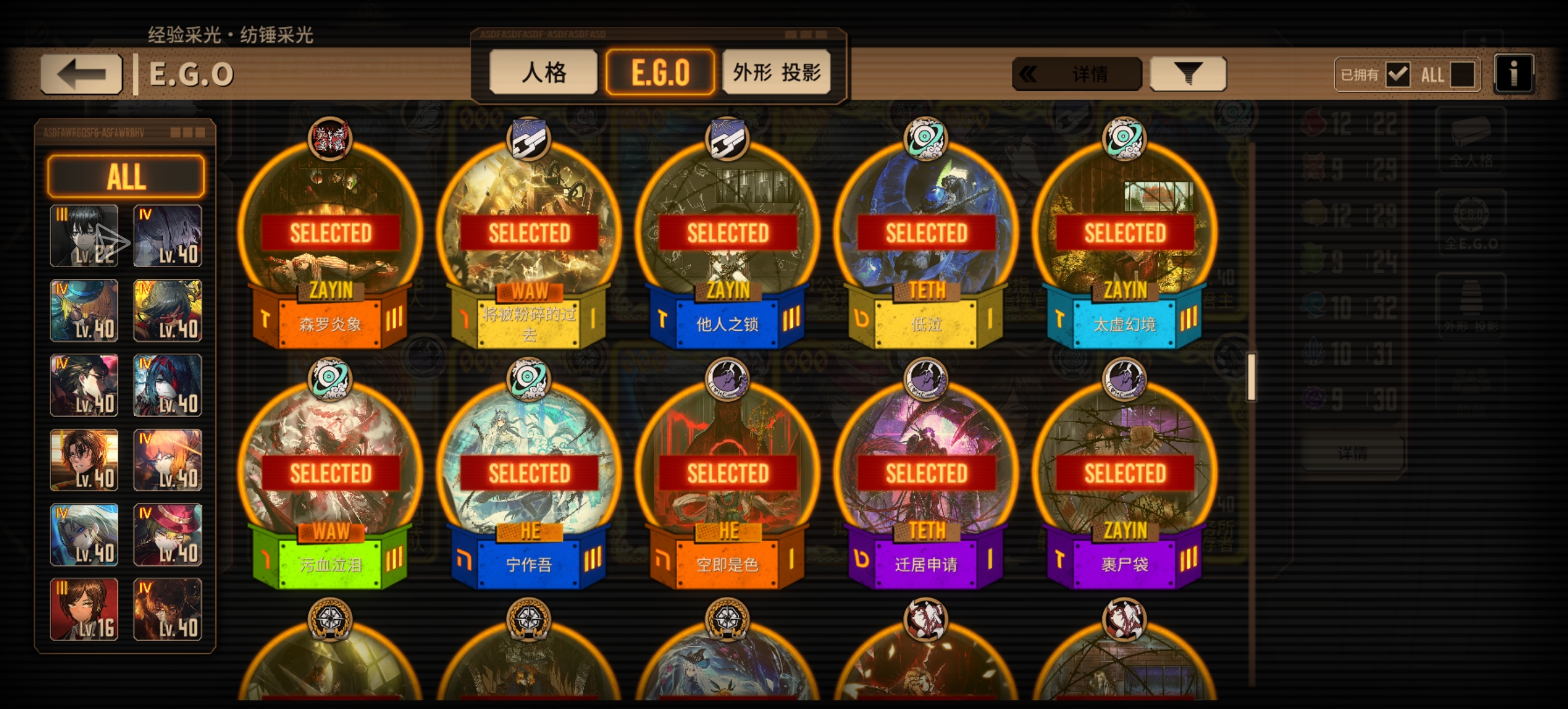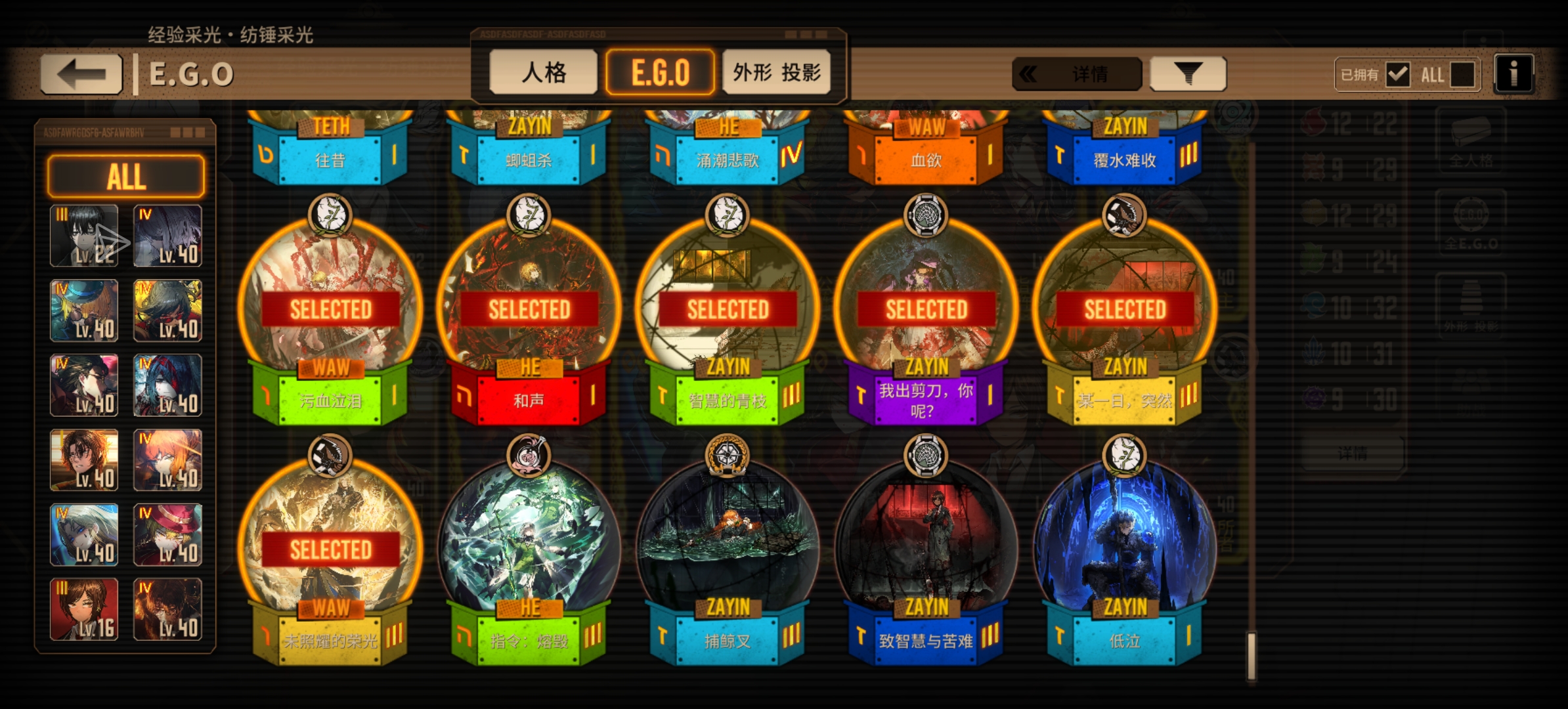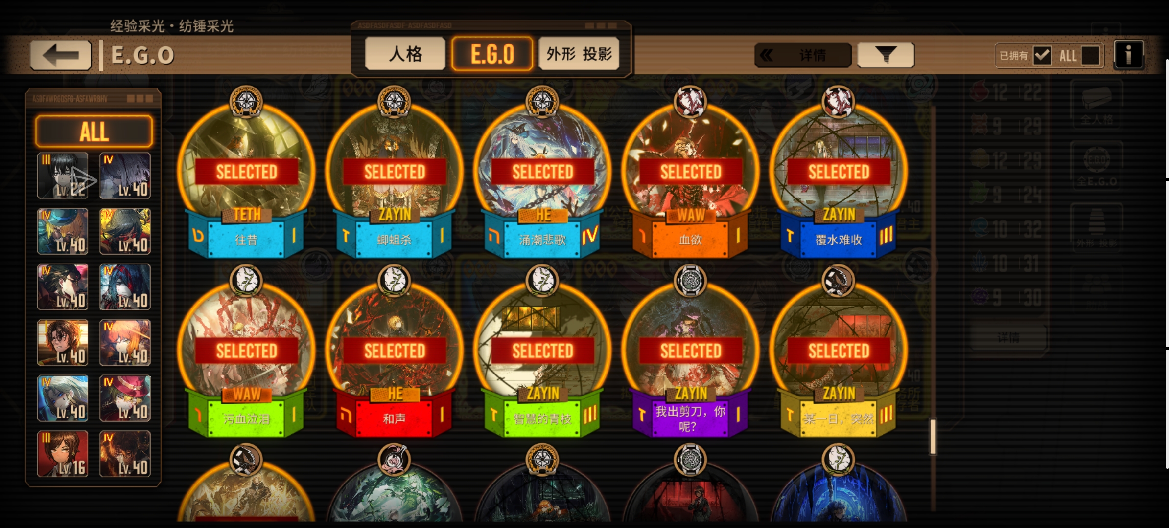 人格和EGO一览放下边了qwq