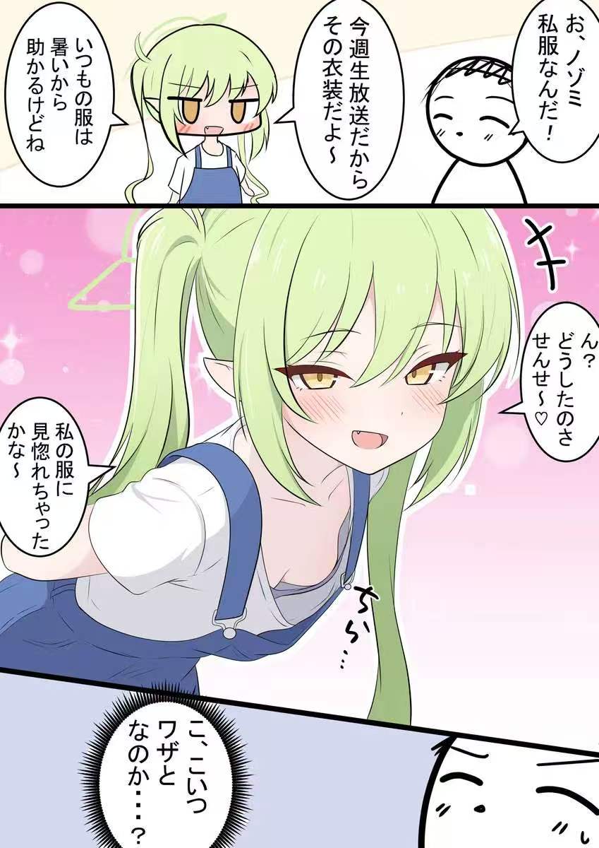 (探身盯着老师)嗯?怎么了嘛,老师~♡该不会是被我的衣服迷住了吧~