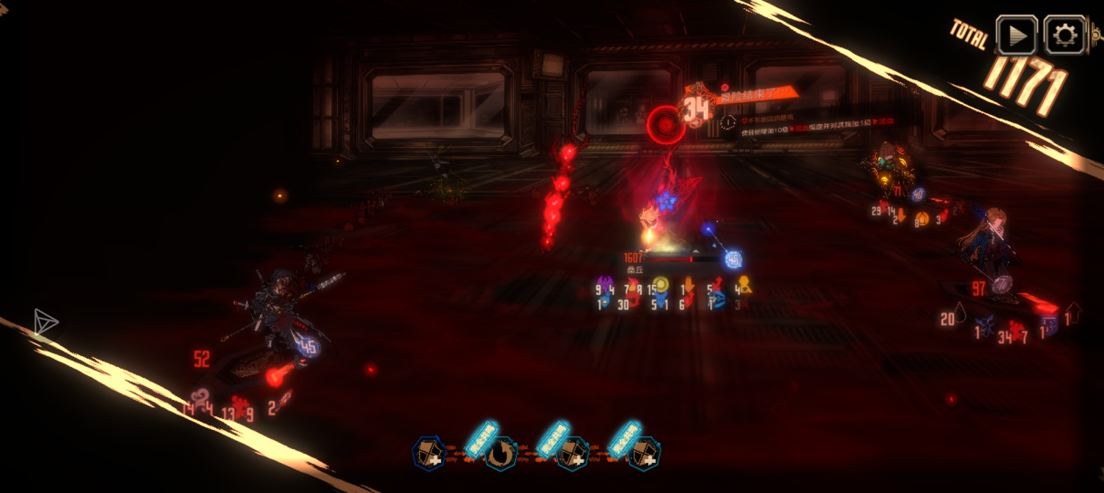 这高额的流血赋予,就算技能全拼过了也得被赋予的高额流血特效搞残,之后红币一碰就混乱,最后没剩几个人,勉强过。