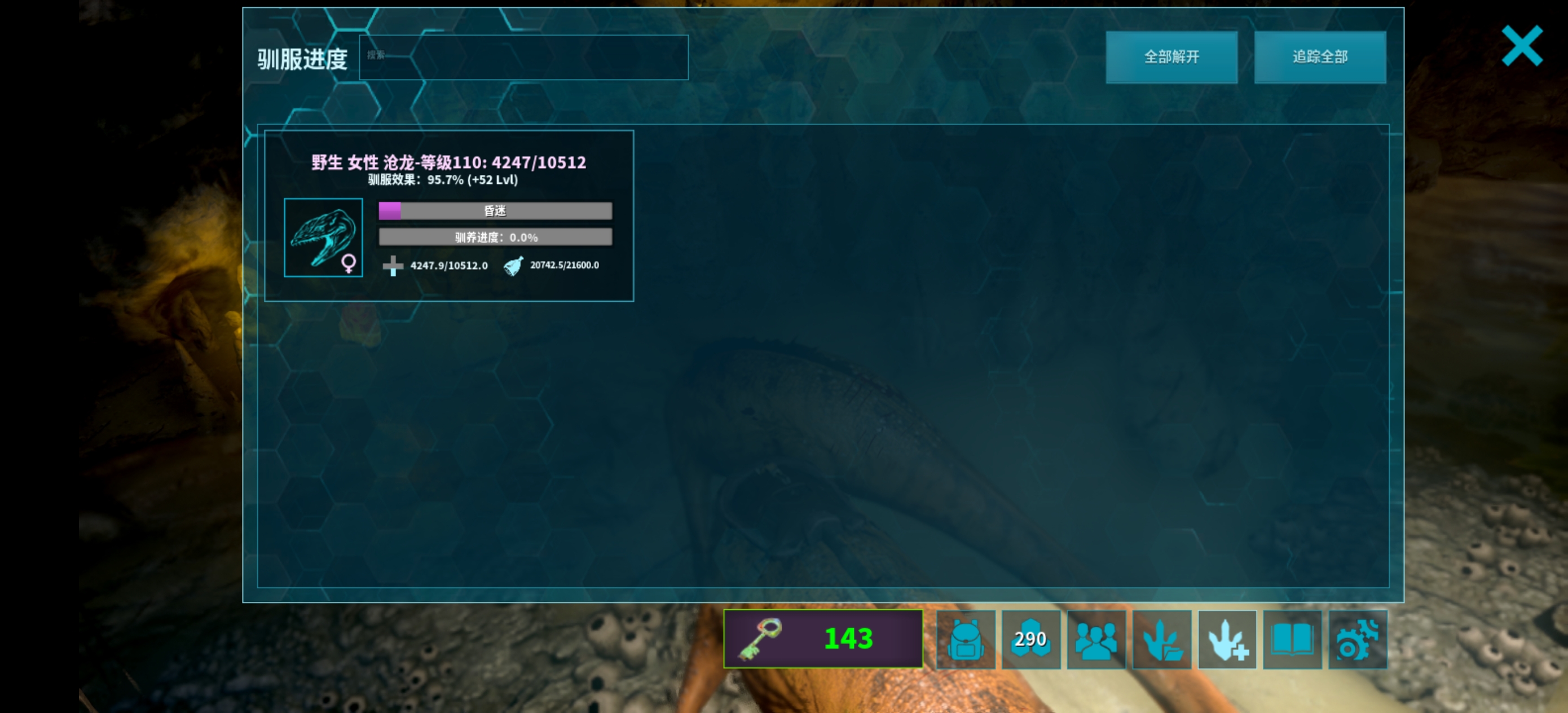 没勾选,但是这沧龙确实是在矿洞里的,昨晚去拿残暴神器的时候看到的,矿洞里的生物不能驯服吗?我第1次知道