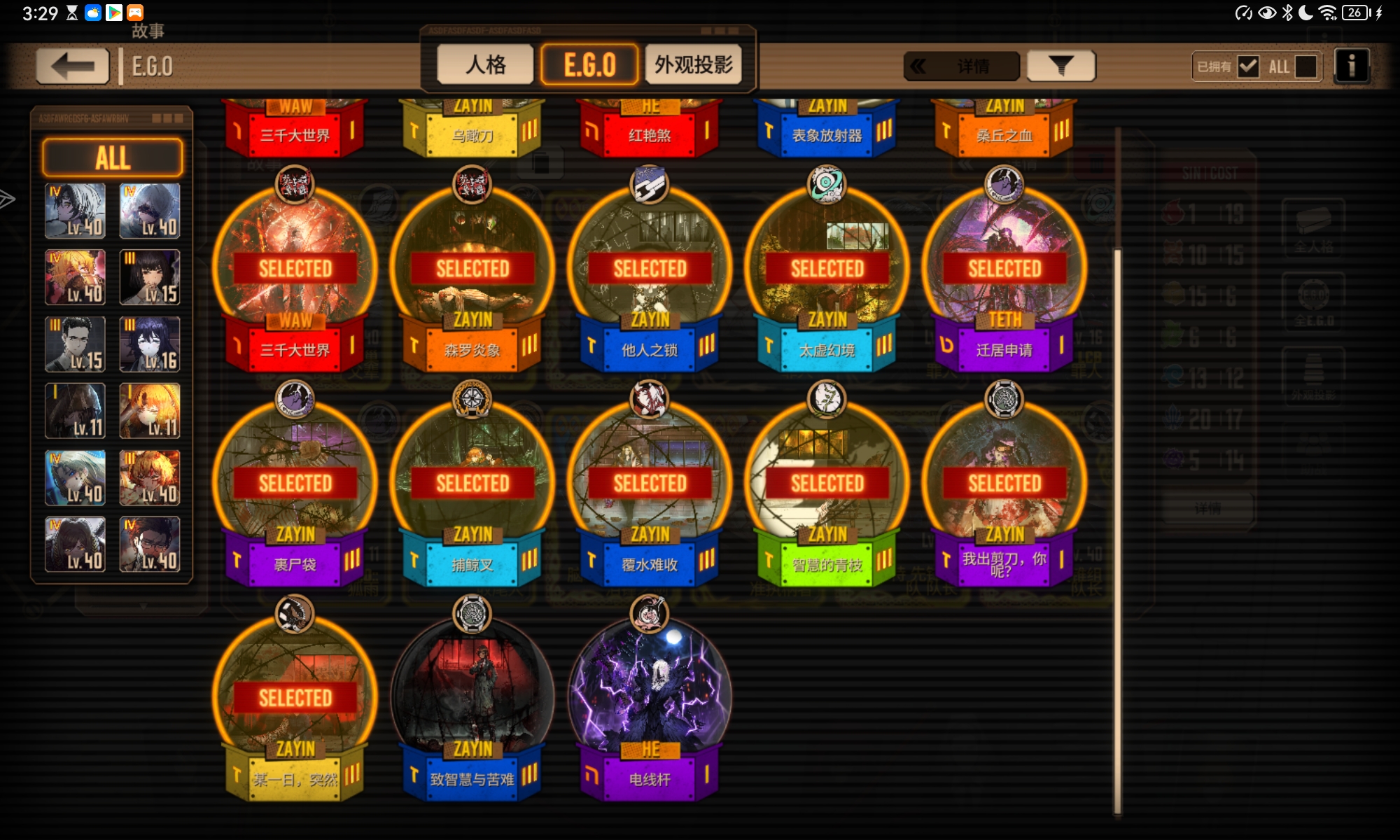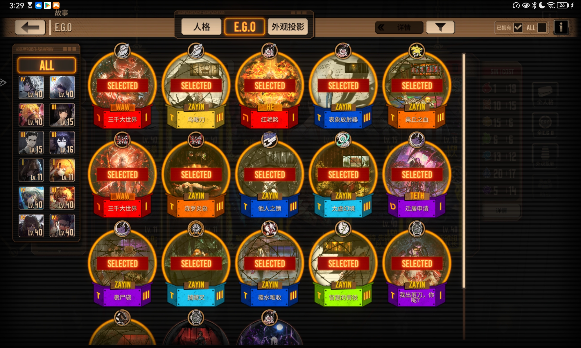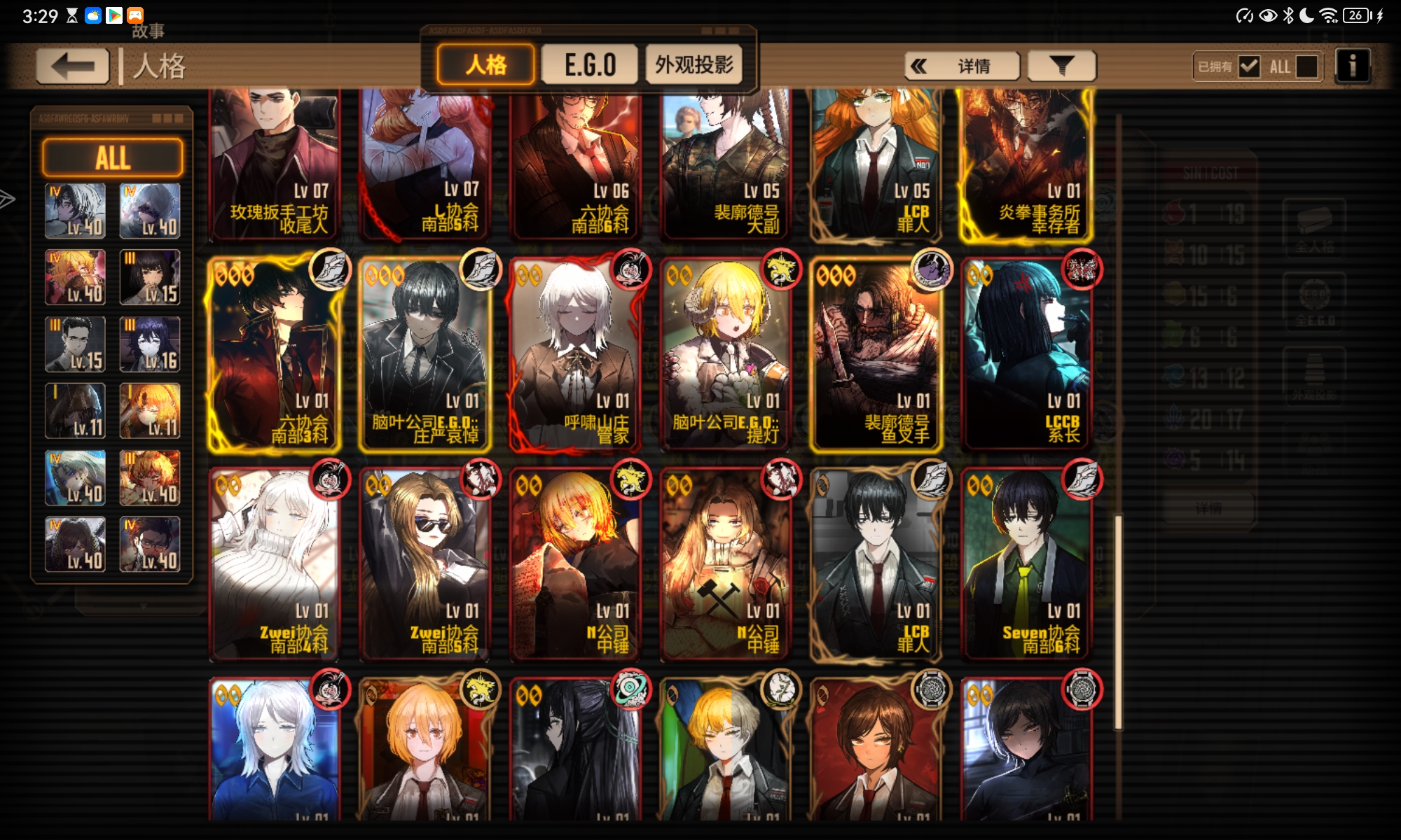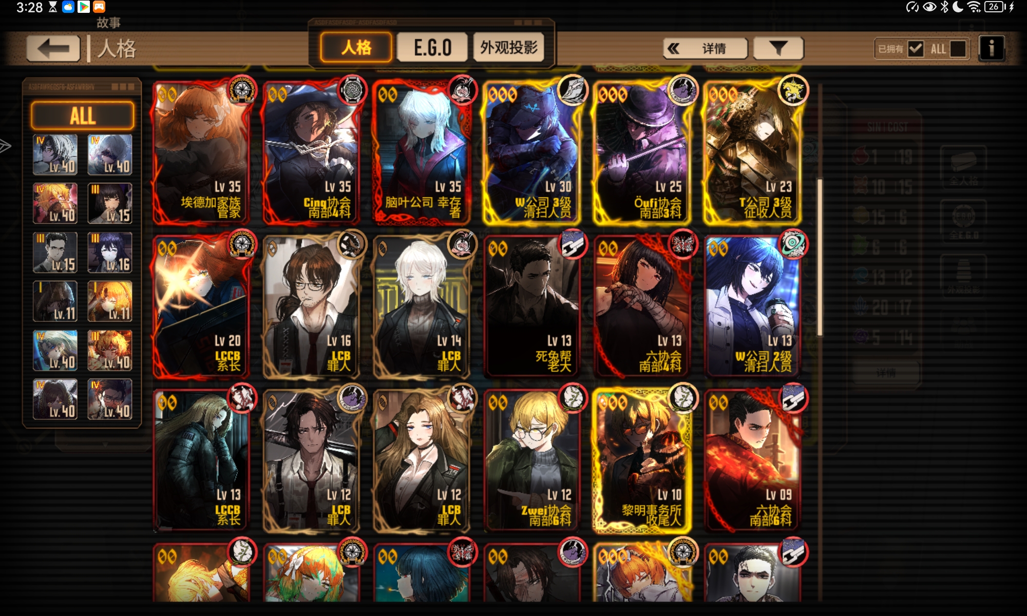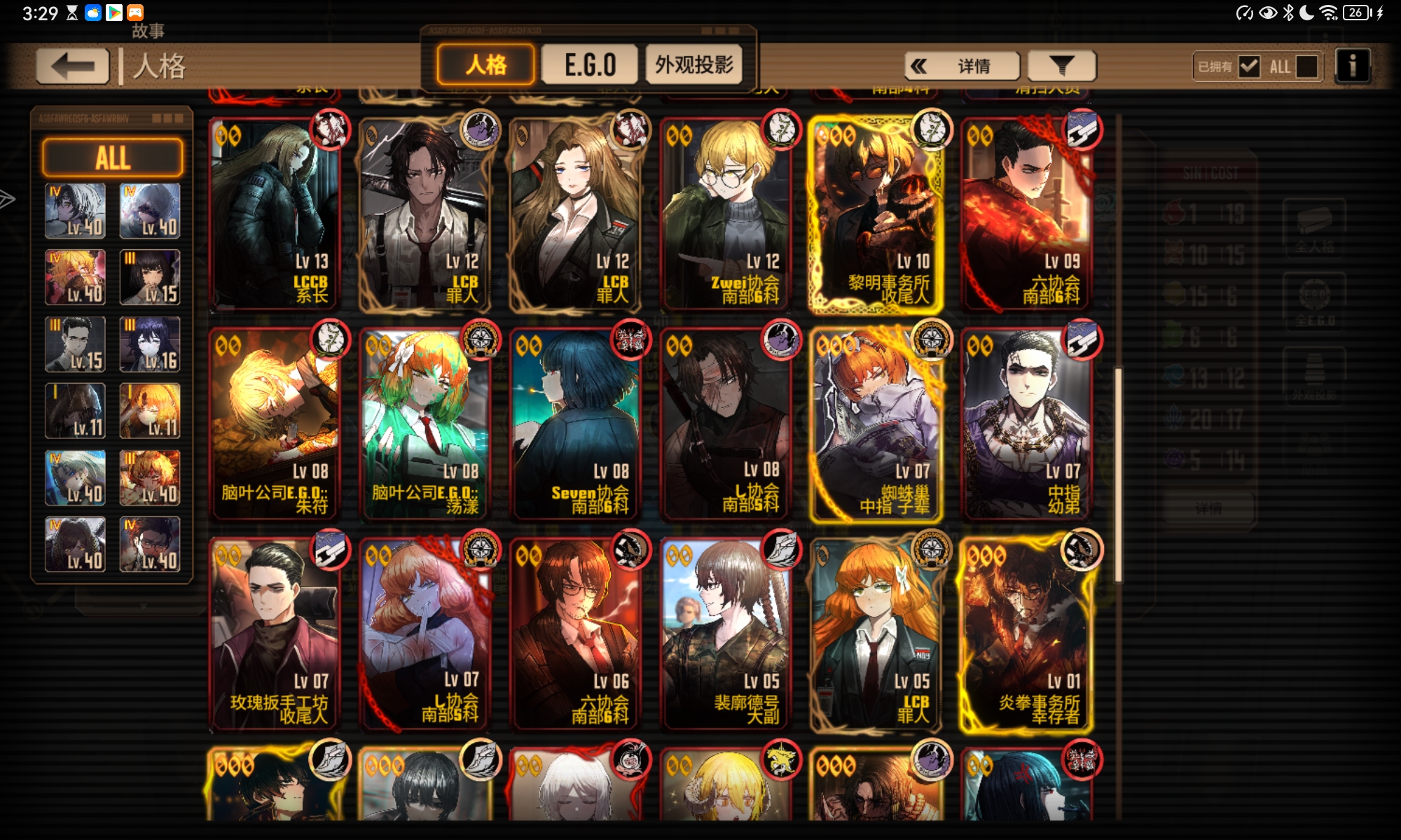 有的人格的图片和Ego放在这里了,刚过完主线开花女,只氪了通行证,资源不多,之后应该培养些什么人格?打镜牢的话,是哪个队更快一点?