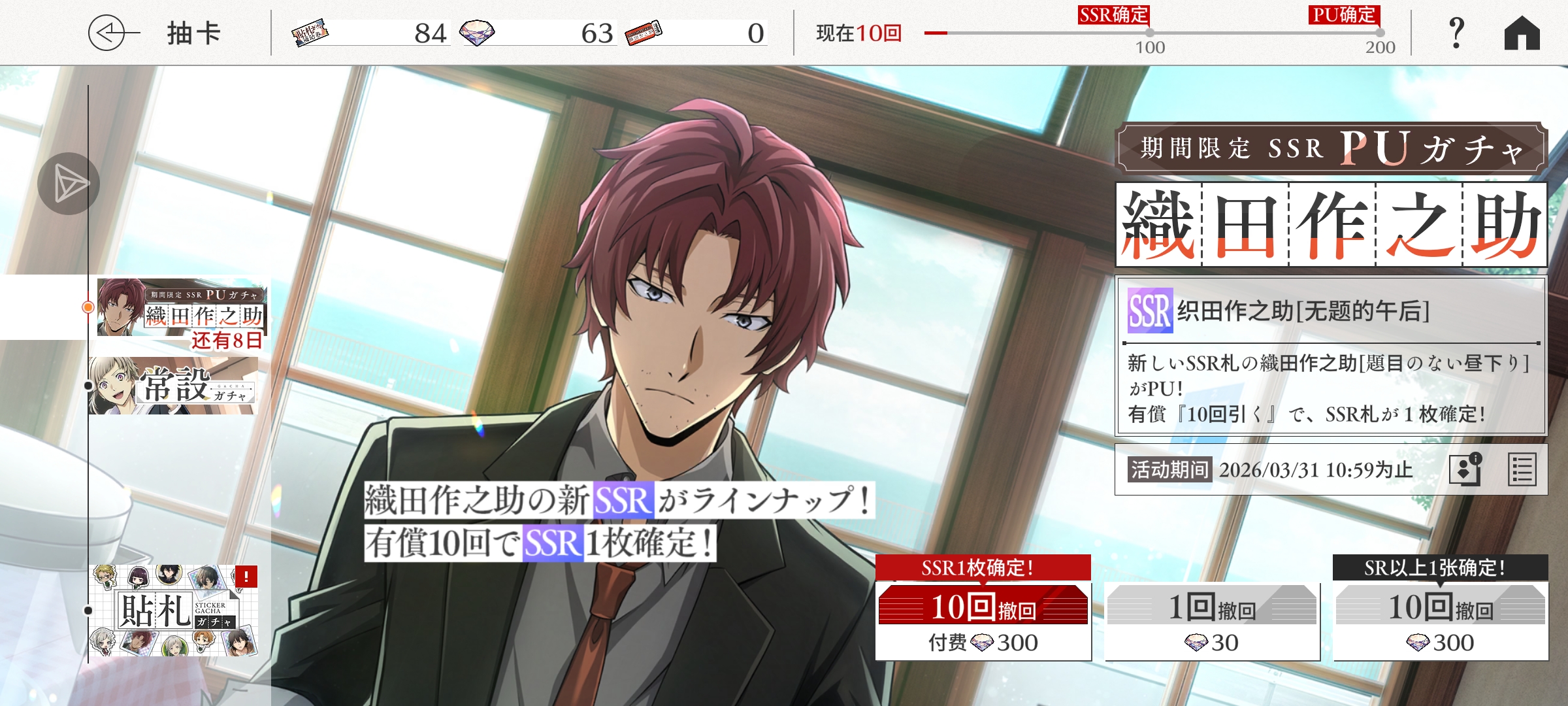 织田的池子爆率还挺不错的,我第一个十连就出了
