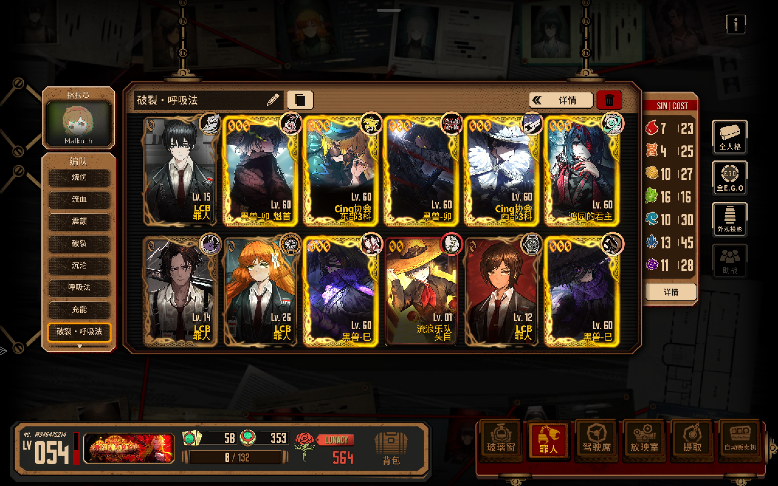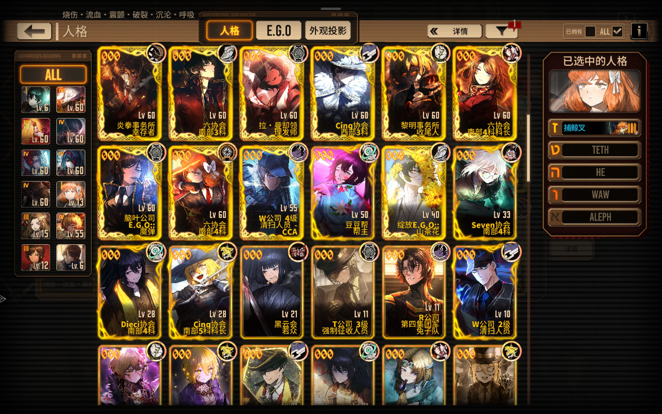 把这个赛季人格lca奥,灯虫,食指堂肝出来吧,呼沉还挺强的,或者等下一次瓦夜,句点兄弟,花孤良,蝶箱等子弹人格打枪队,牢内4级ego饰品亡命之徒特别强