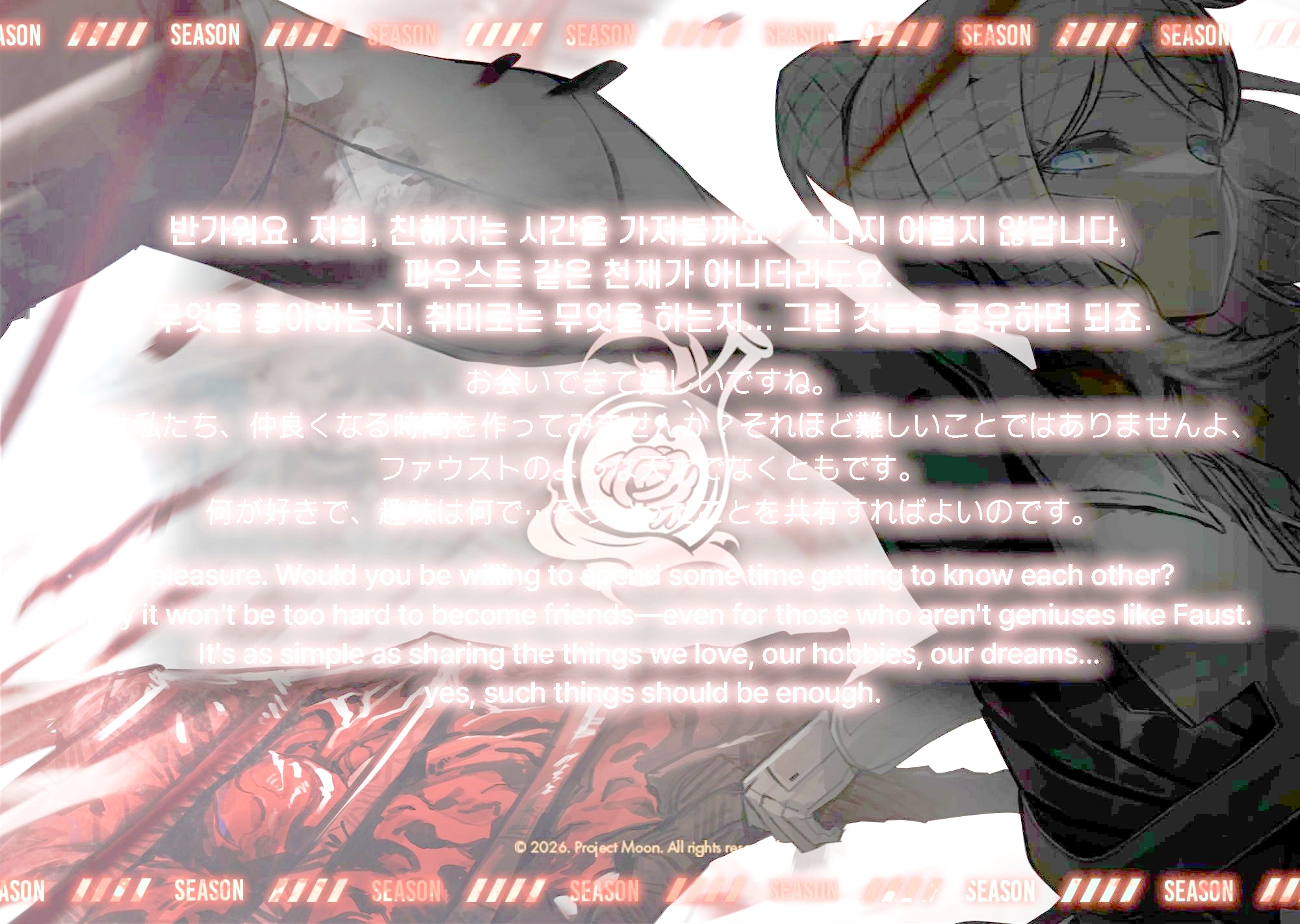 幸会。首先,您是否愿意花些时间交个朋友呢?这并不难,即便不是浮士德这般的天才也能做到。喜欢什么、兴趣是什么……分享这些事情就可以了。