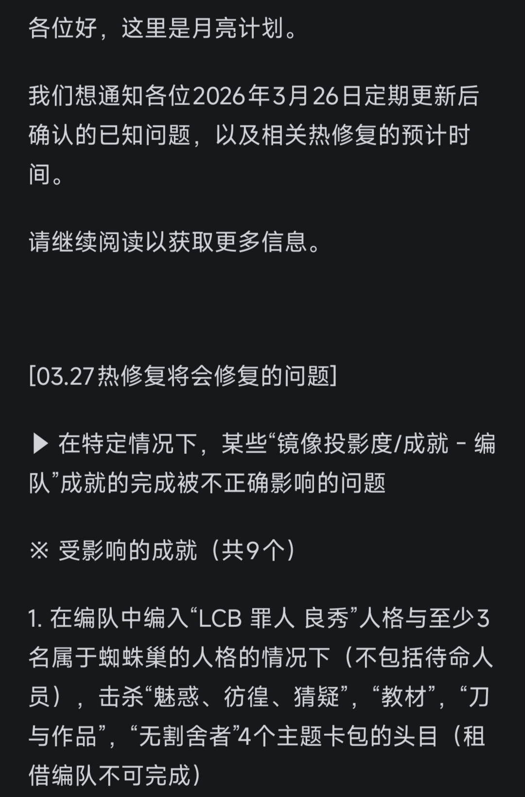 公告:2026年3月19日定期更新遗漏内容与已知问题说明
