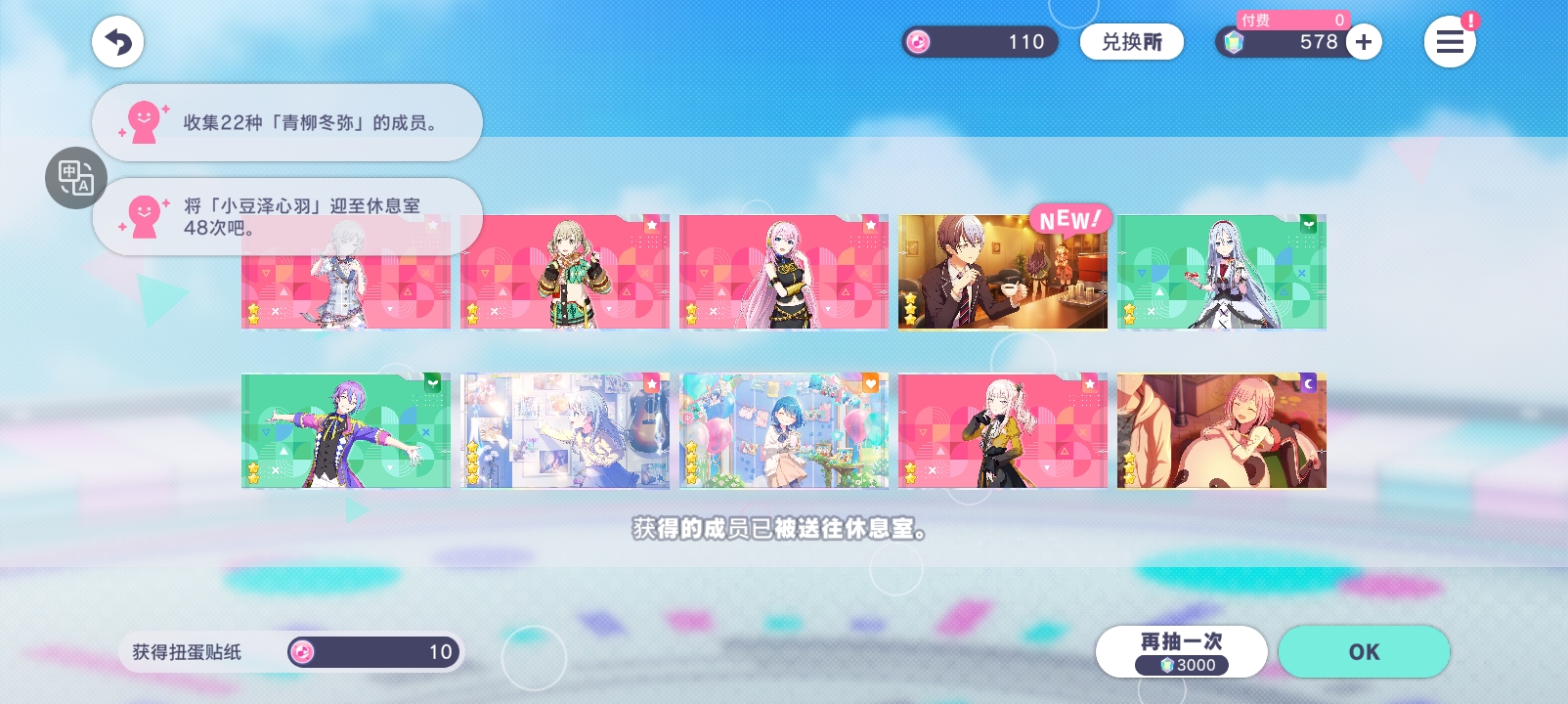 110抽10张四星