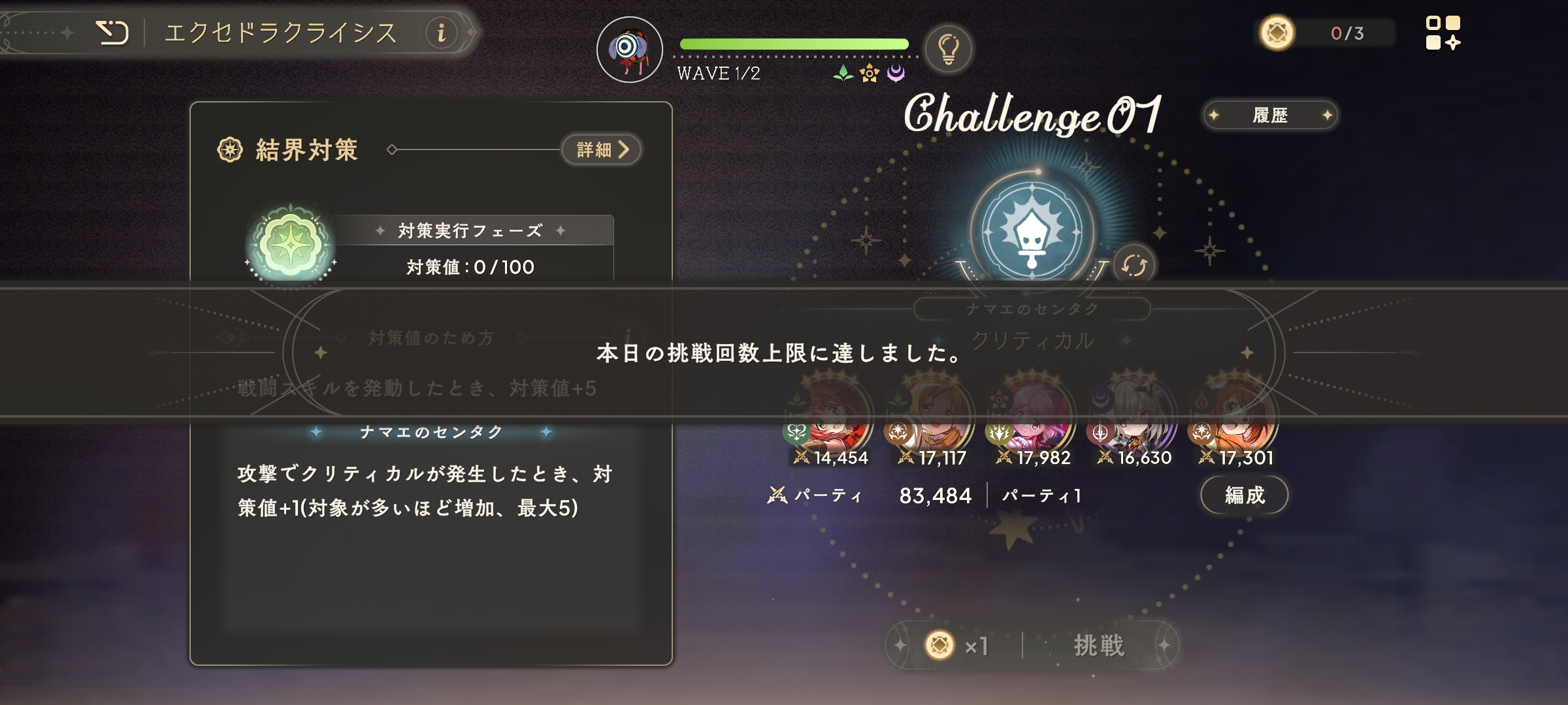 这我都还能接受,但关键是中途有一局我想换个配队,结果点错了吞了一次挑战机会,合着那3个豆子不是奖励次数中途结算不会返还啊(有被自己无语到)