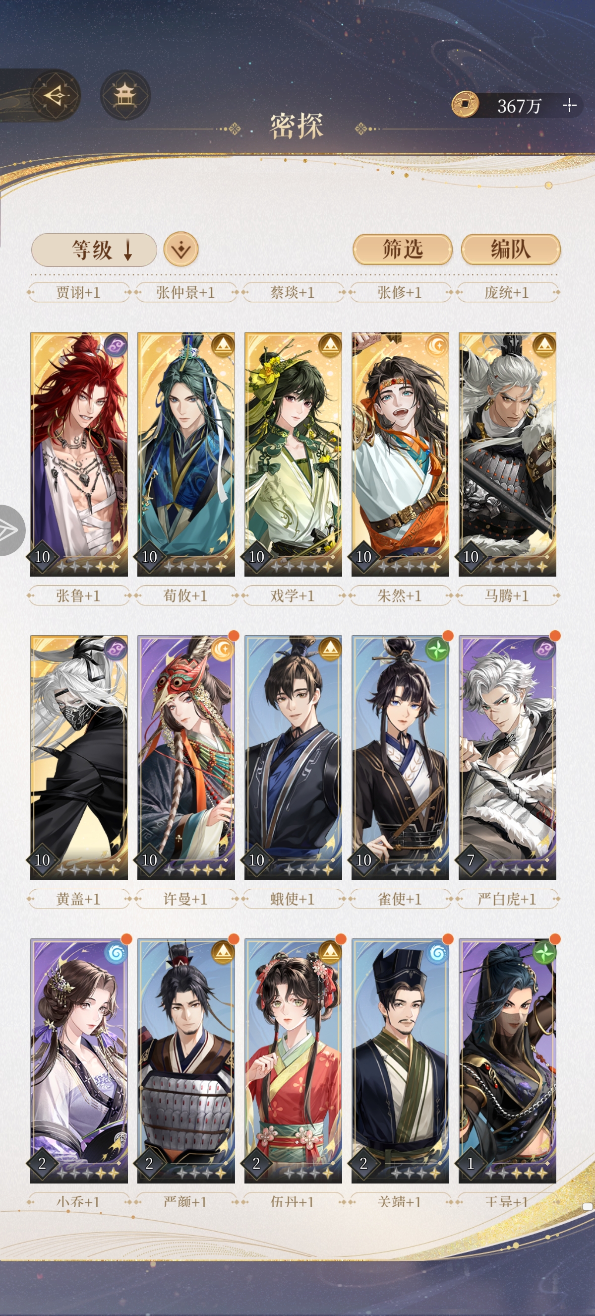 辅助,贾诩,张鲁,戏学养到50➕七,然后刷关键命盘就可以用了。