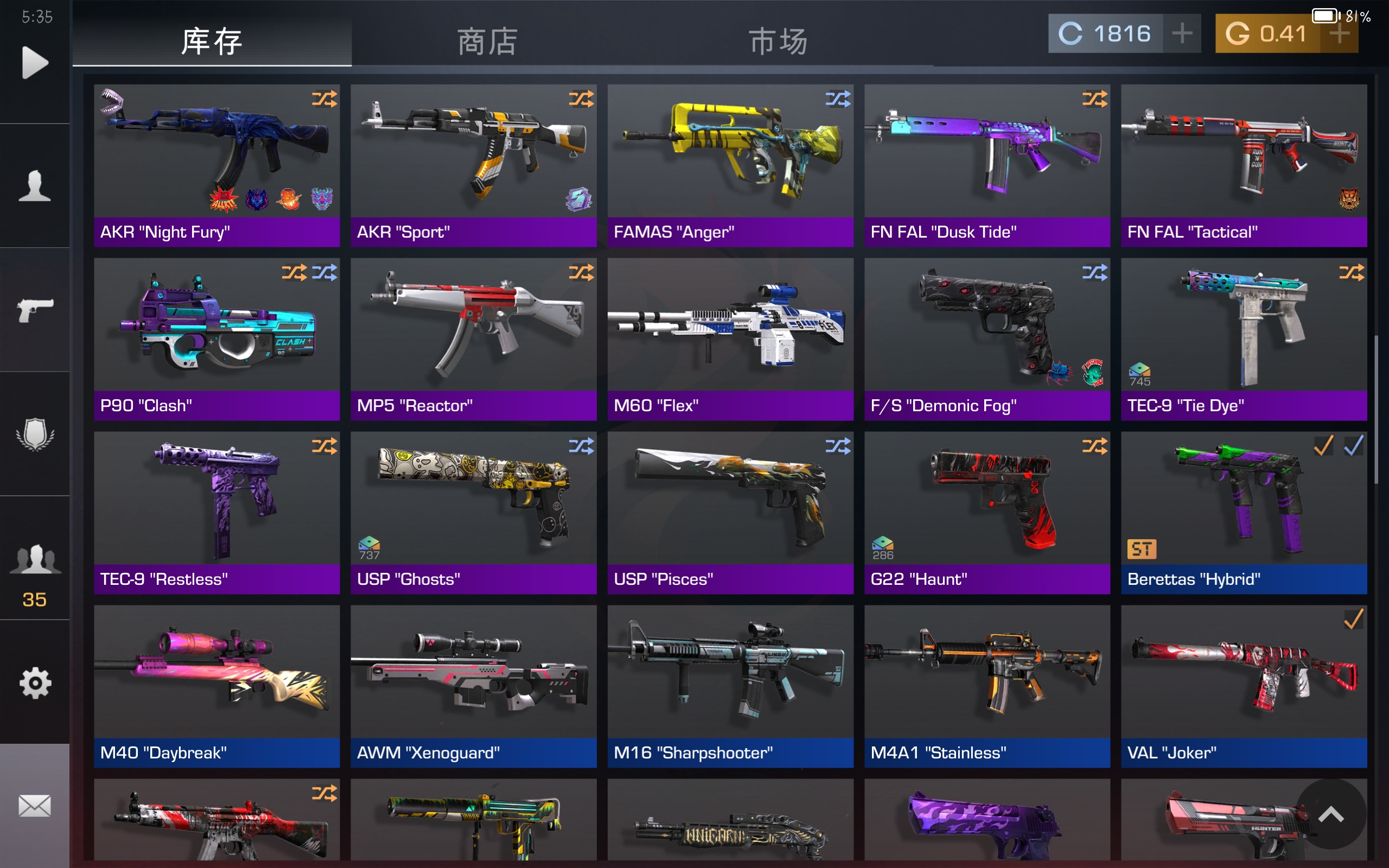玩了5年的仓库期间也卖过手套卖过刀时间过得真的很快刚了解这个游戏是还是一天的下午拿着手机看着谷歌发现了对峙2这个游戏从刚开始的很喜欢玩也认识了一些朋友期间换过两个账号第1个账号当时的谷歌账号并不稳定被盗了买了第2个账号一直玩到现在