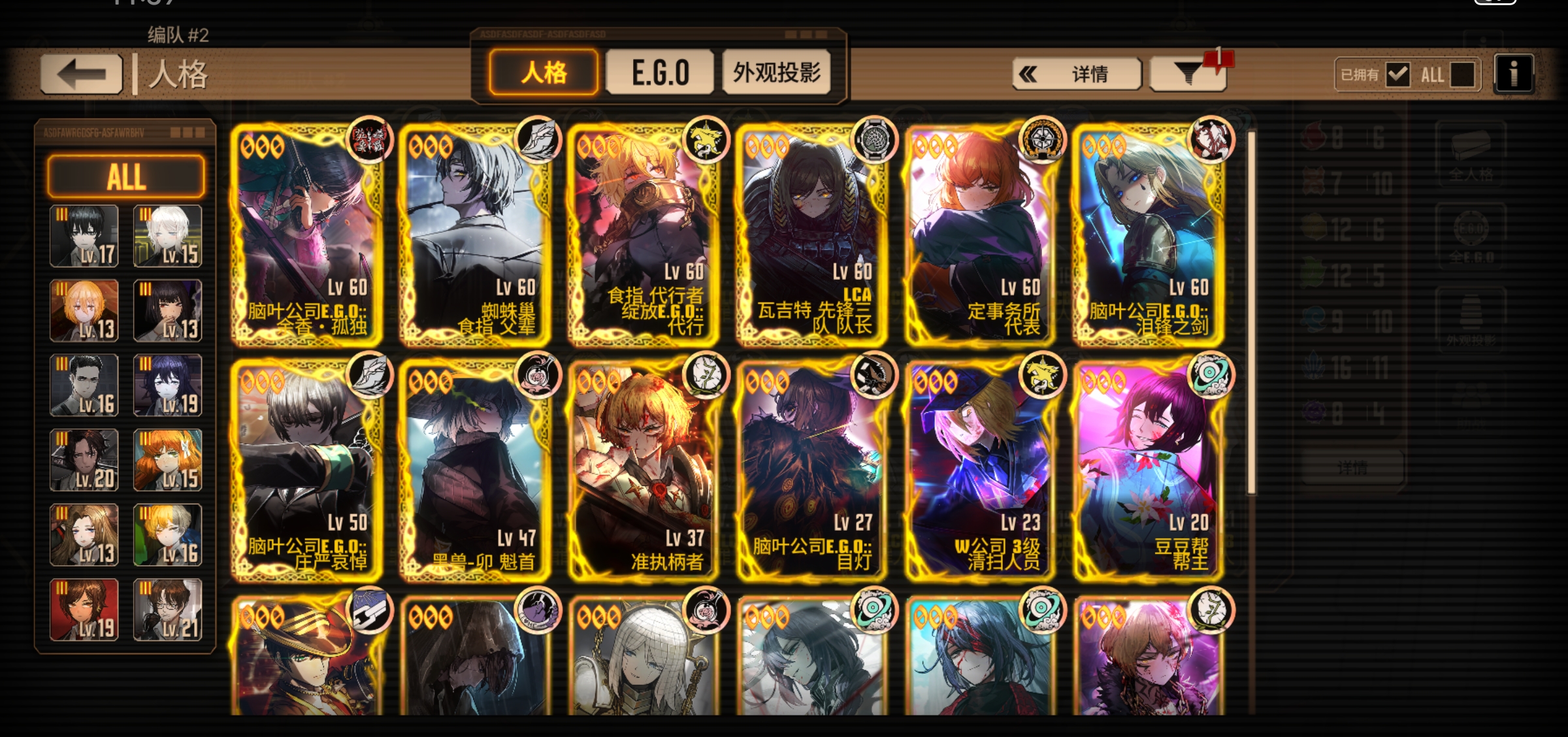 你这个人有点少但是有一个完整沉沦队其他队人就有点少了,可以试着组一个呼吸打牢如果组呼吸的话人格卷换蛇罗然后再搞一个小指辛