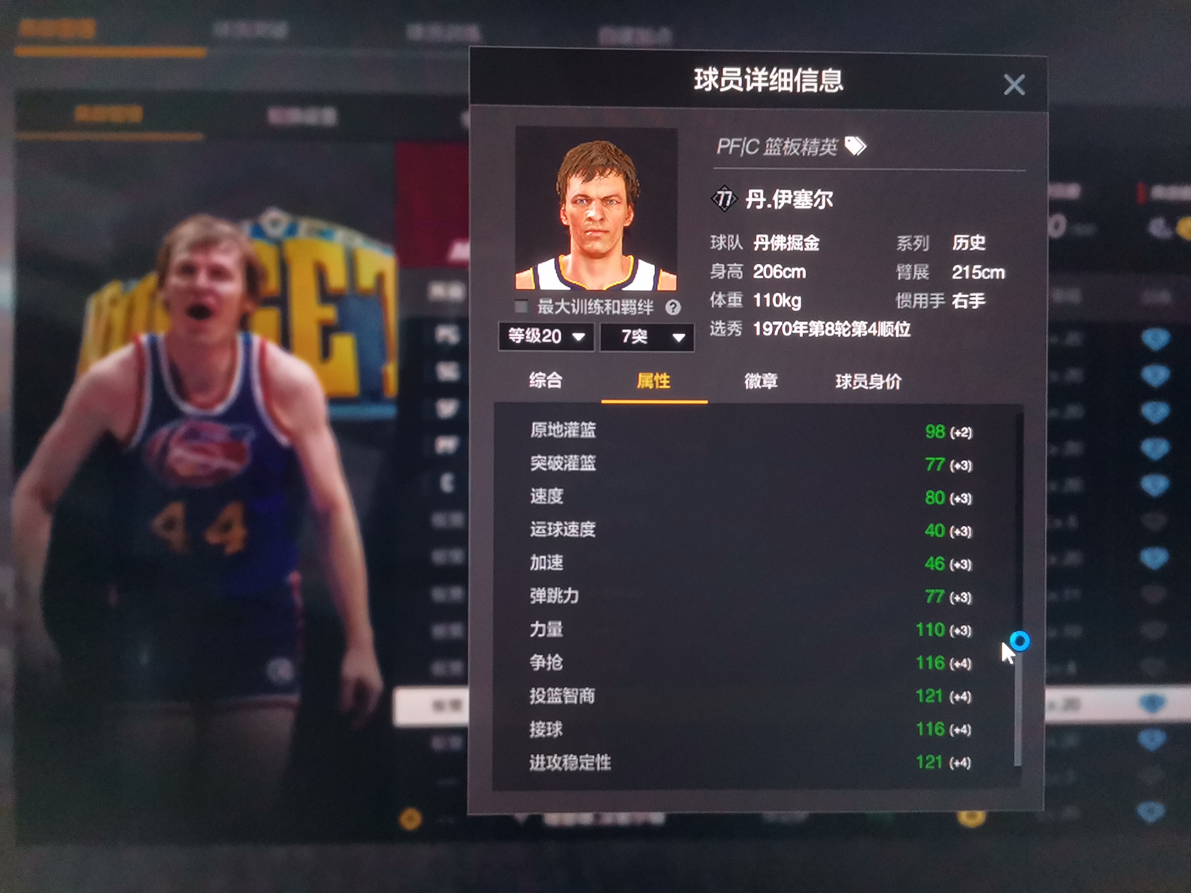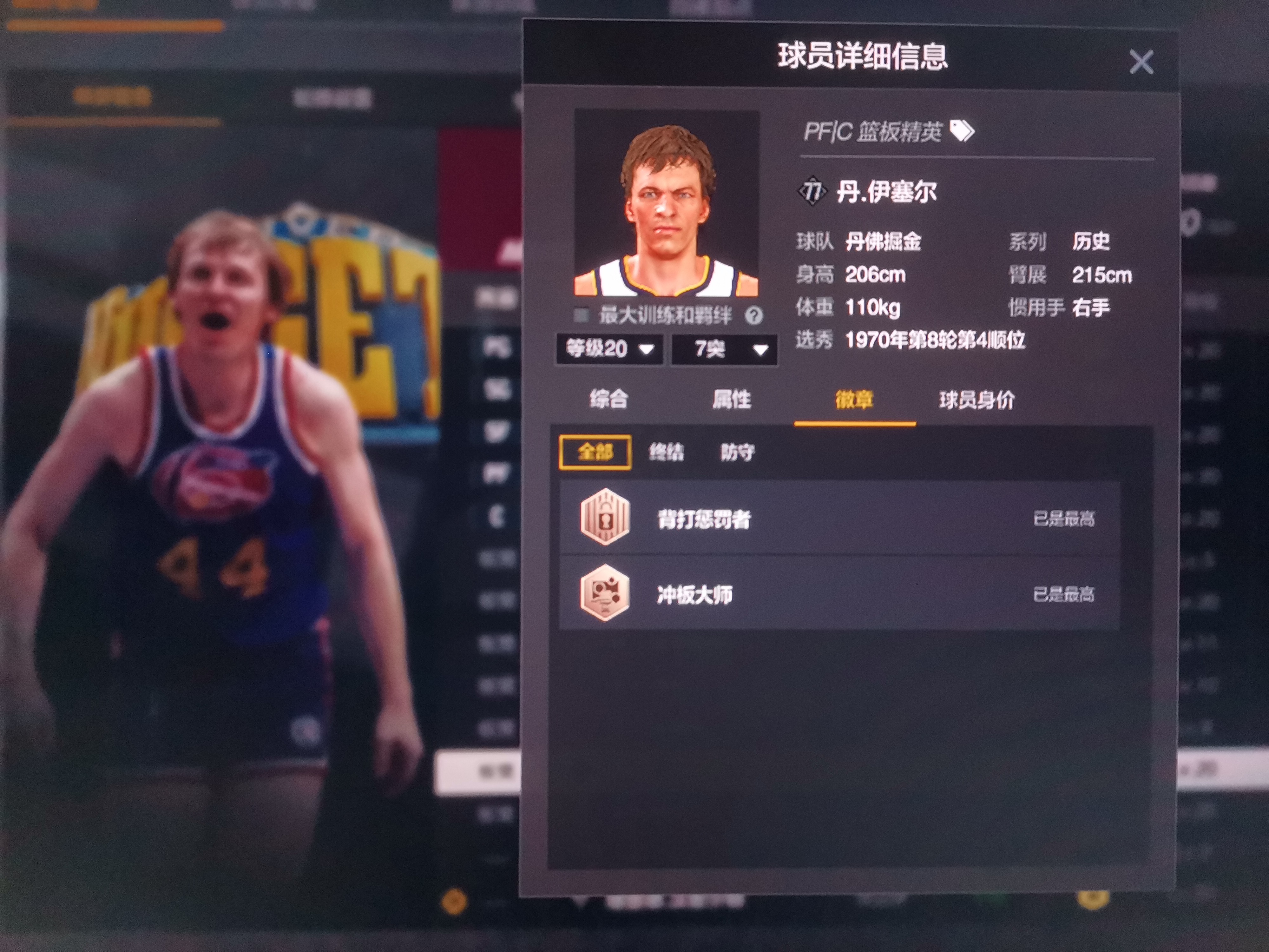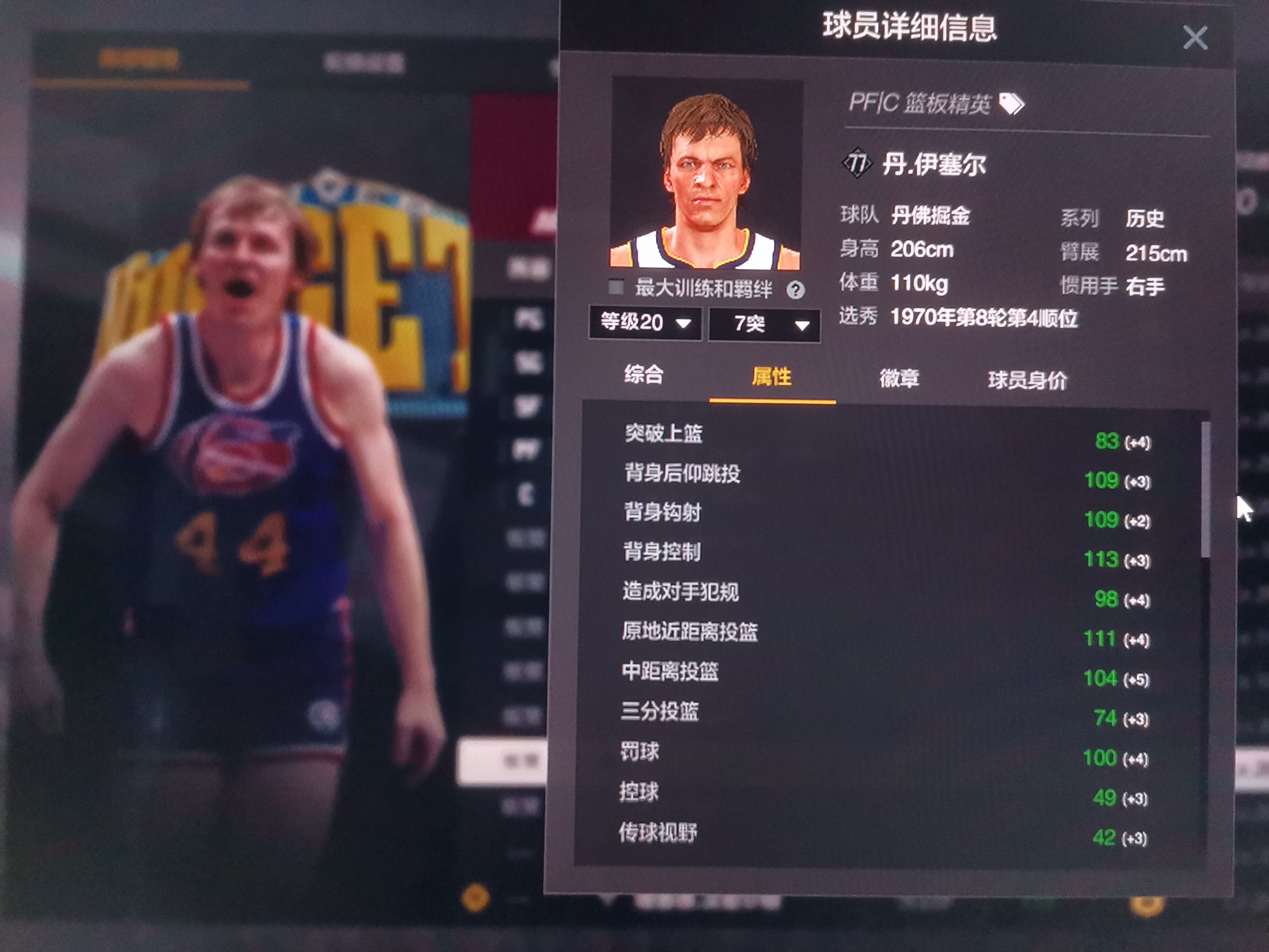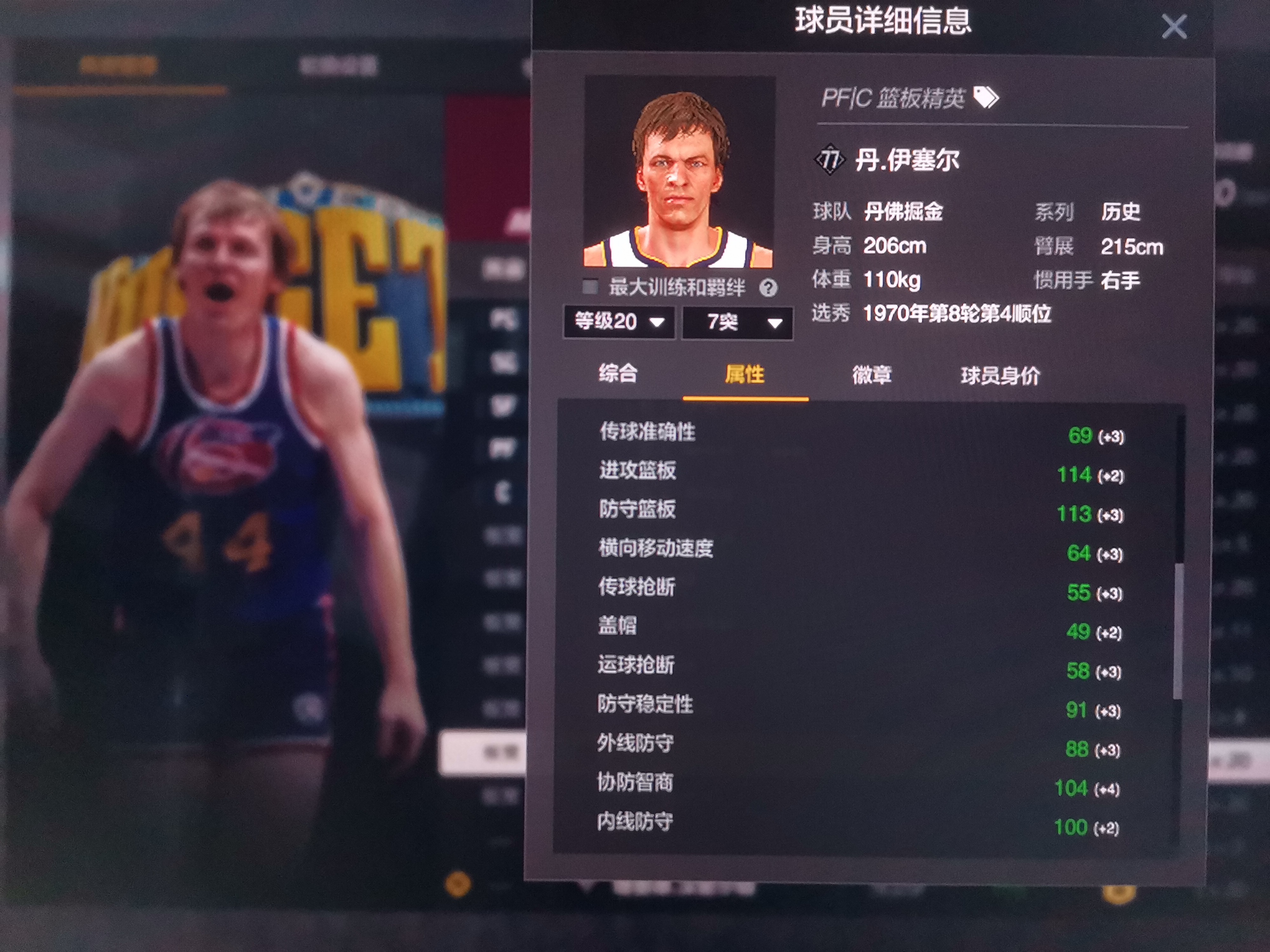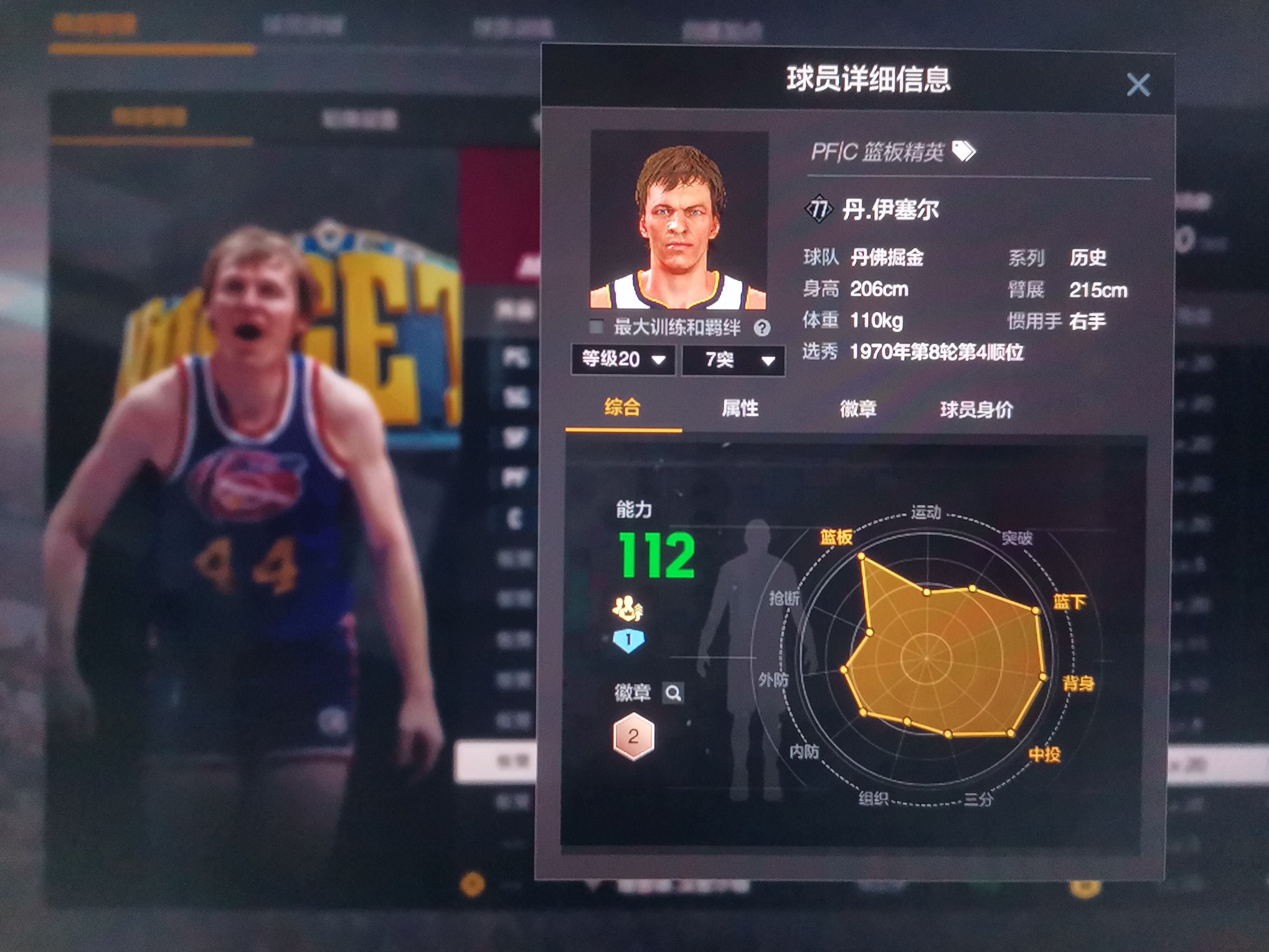 别被雷达图欺骗,206模型厚实,内外防兼备的内线巨兽,弹跳力过线解锁小篮板直升机, 不同于某些个高但断腿的C跳不起来因此只能靠卡位捡板,他可以跳起来撸板,篮下硬起的站扣包迅捷,难以被硬拉或追帽,右底脚有三分热区,由于中投数值不低,虽仅有 74 的三分数值,街头实战也往往能稳定蹲出 2 中 1 的效率,投篮包采用德克诺维茨基同款投篮包,650ms出手速率同位置里属于very quick,128 体力,王朝稳定三节打卡下班,但由于缺少关键的卡位怪兽徽章经理模式不推荐使用![[kun]](https://cdn.ourplay.net/cbo/face/01fa973eed508480a8def38801d97958.png)