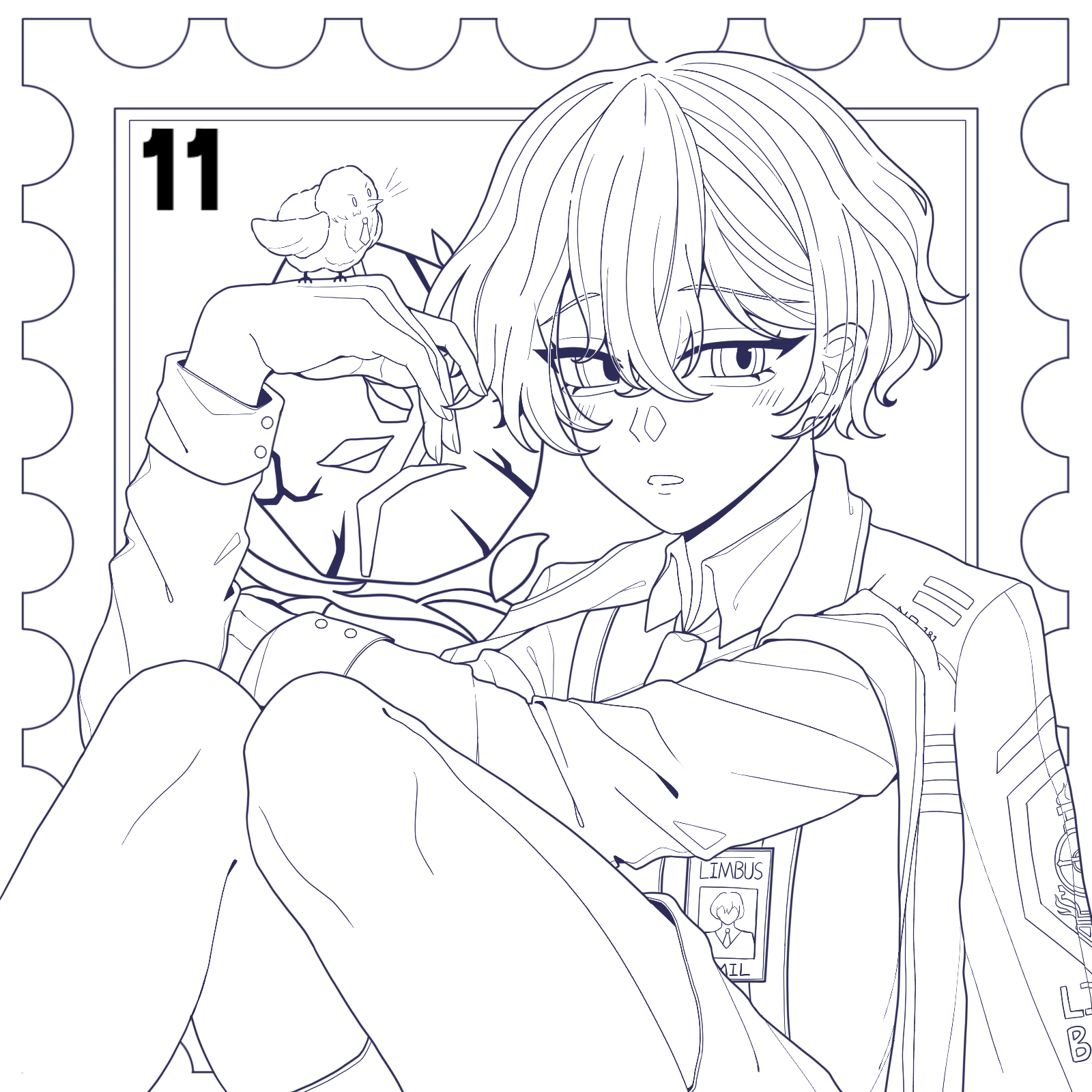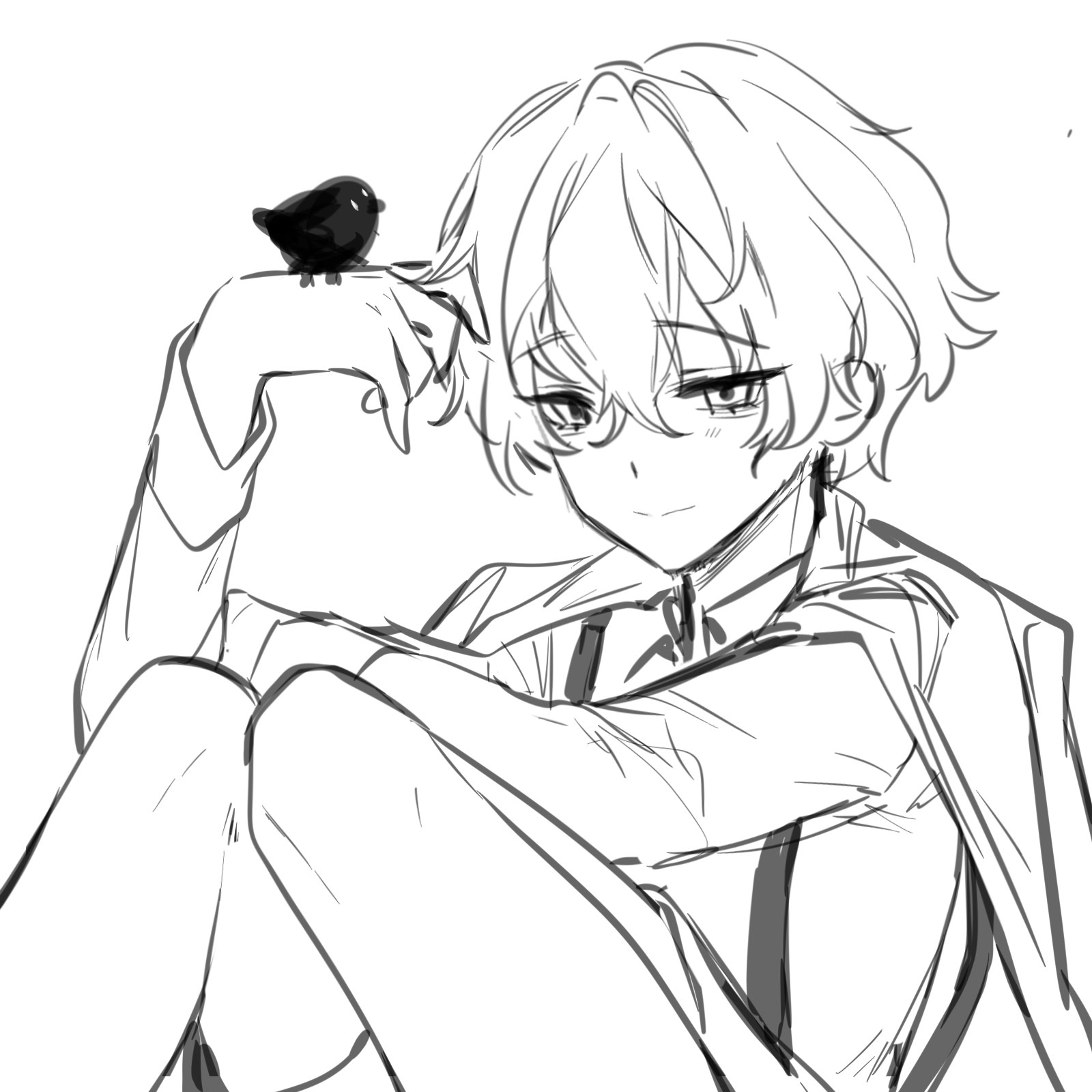 草稿→亲友a 线稿→我 上色→亲友b 这种吊梢眼小🐥最萌了😨