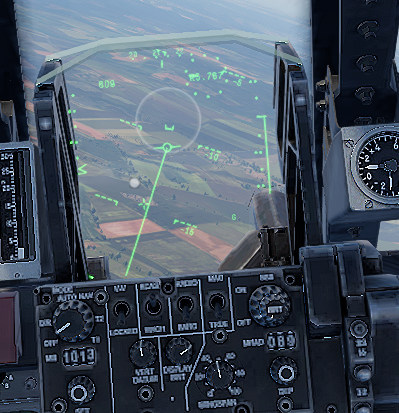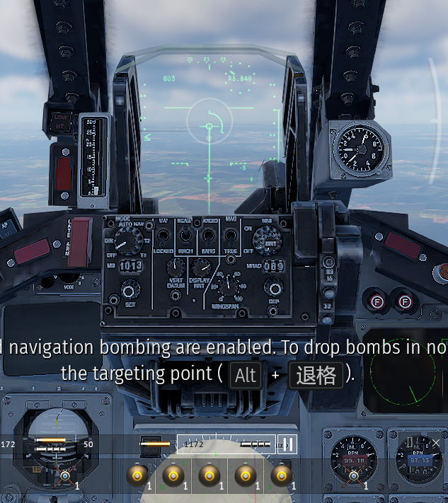 起飞,机头朝向战区,此时座舱瞄准是这样的,战区被一个十字标出来