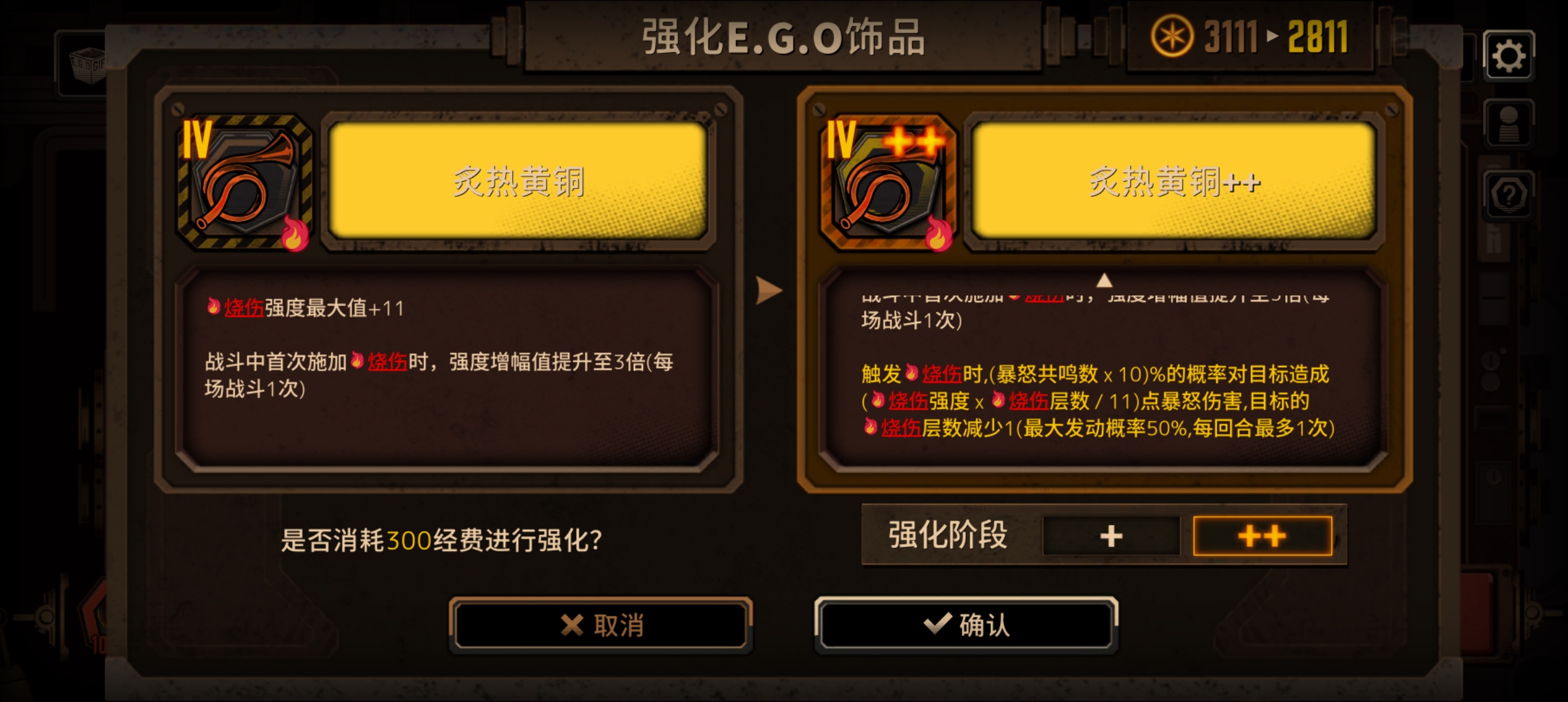 说句实话,并没有什么用DOTA伤害叠高了,之后也就那样而且烧伤属于每一个一回合才能触发一次的那这样他能提供的输出就很有限,所以看不出什么差别反观沉沦破裂流血这些东西要么拼点触发要么命中时出发,而且还有额外伤害这不比烧伤要有用